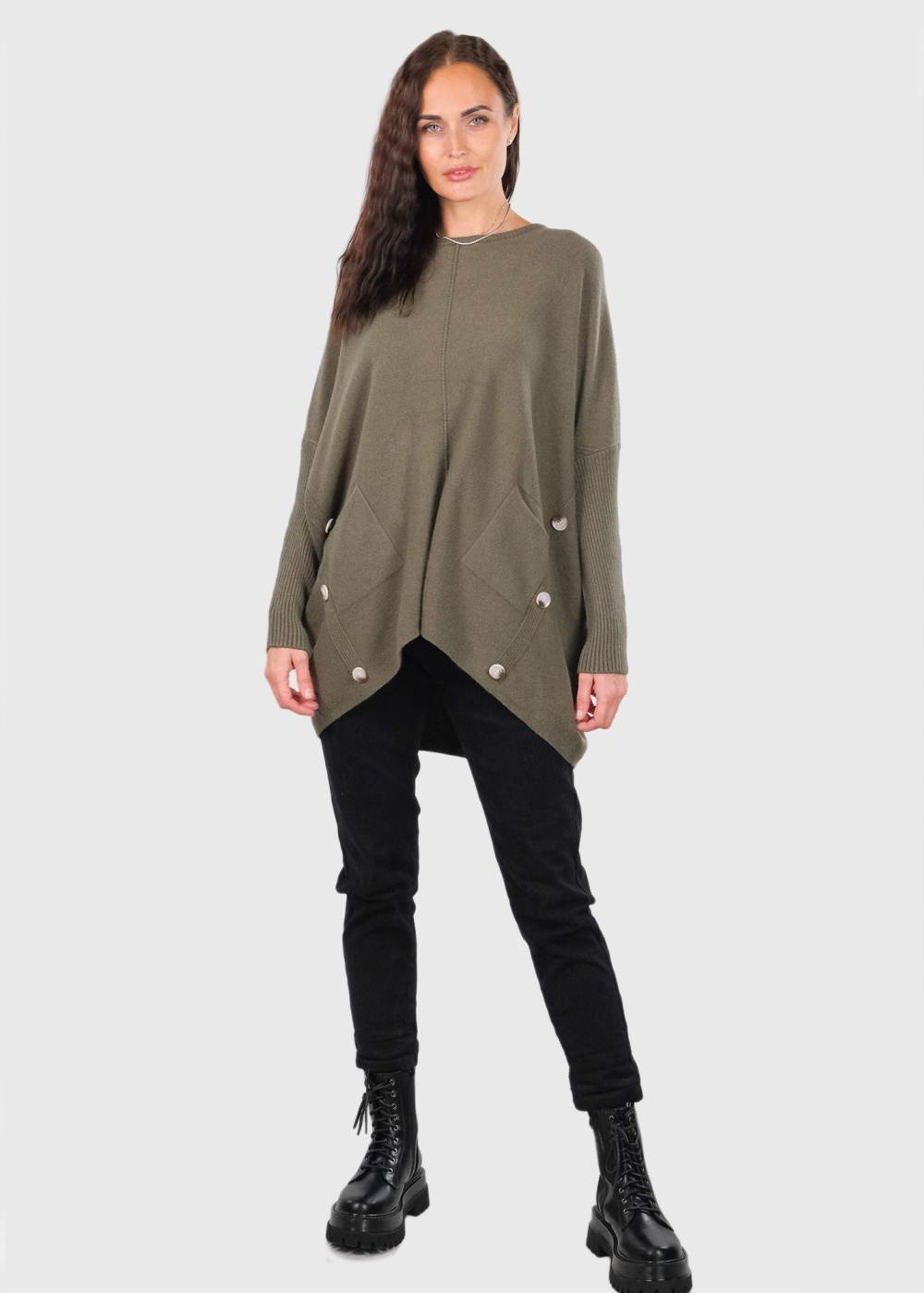 Annabelle khaki sweater with pockets