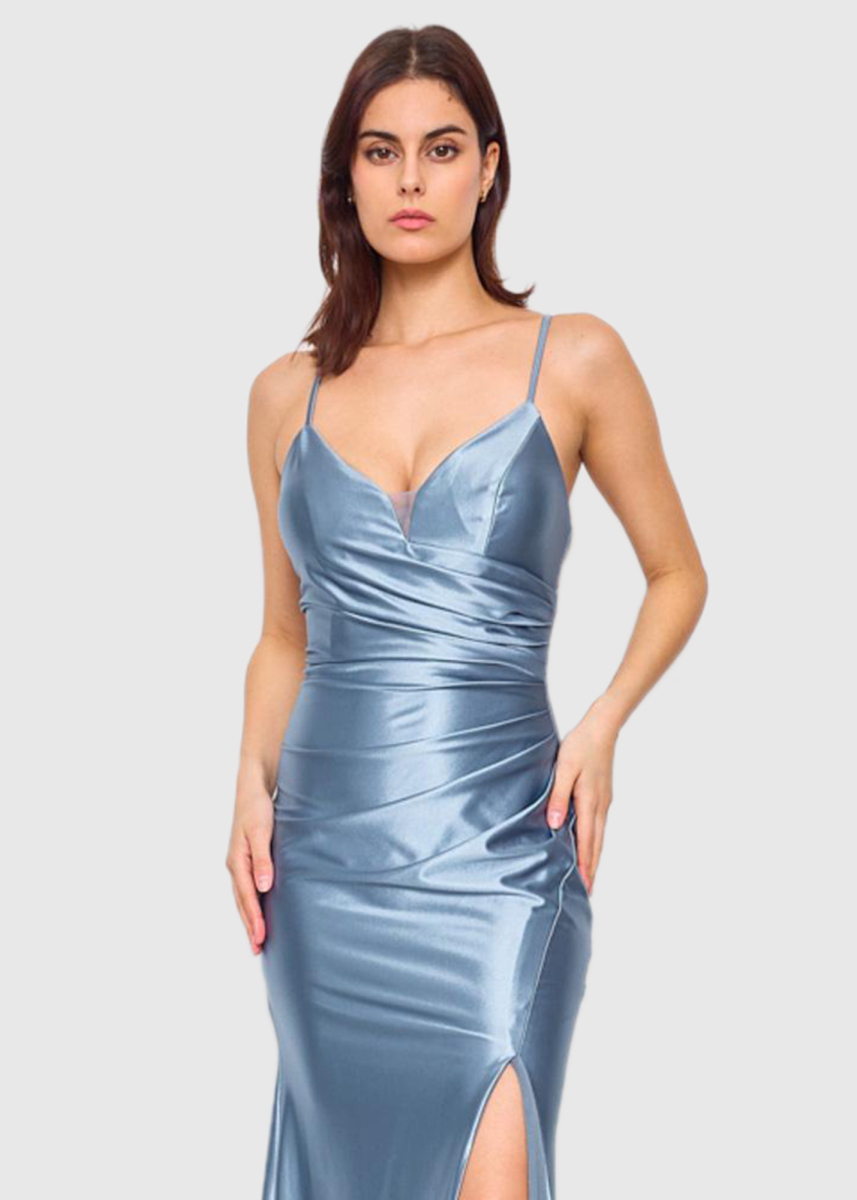 Arna blue split hem evening dress