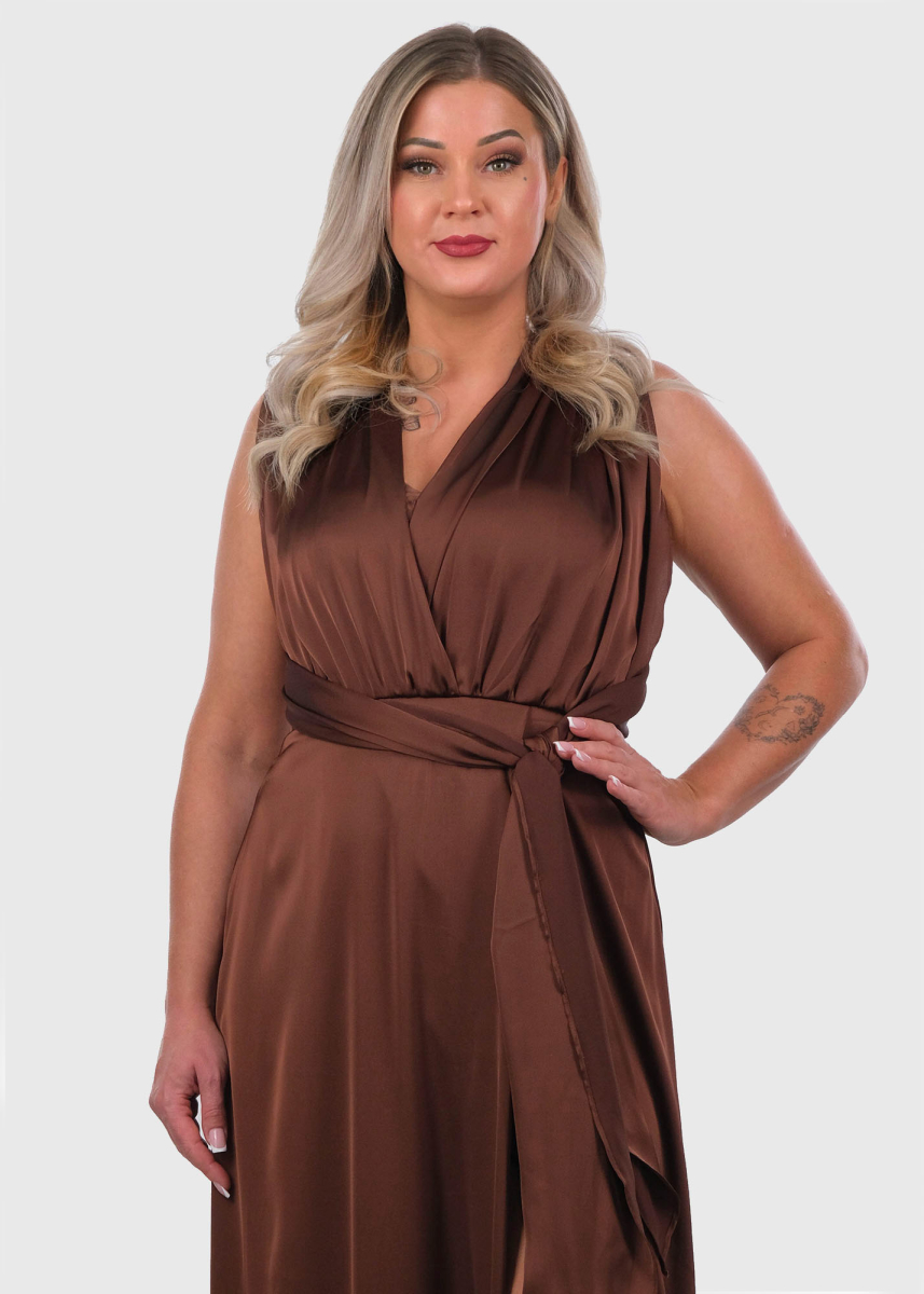 Bibi brown long evening dress