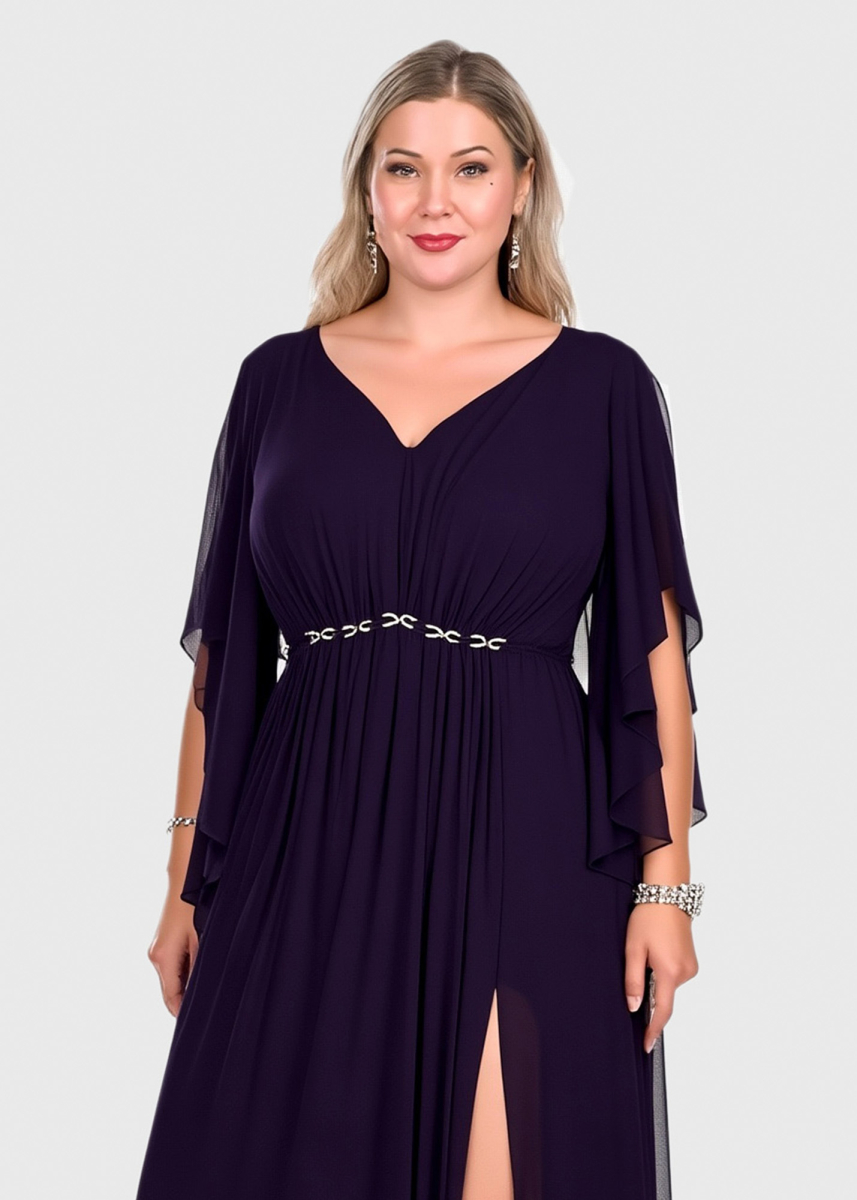 Velta Plus Size dark purple long zipped evening dress
