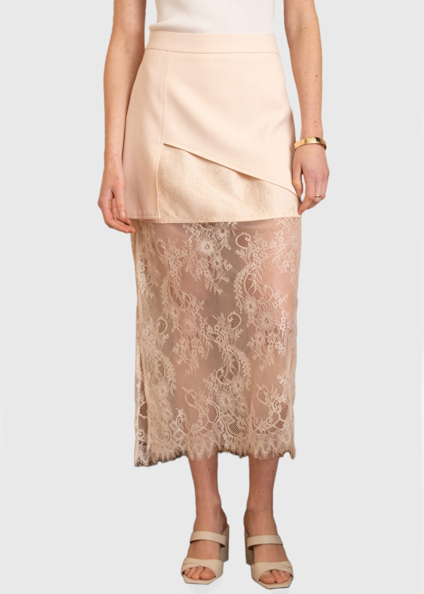 Tamila beige long skirt with lace