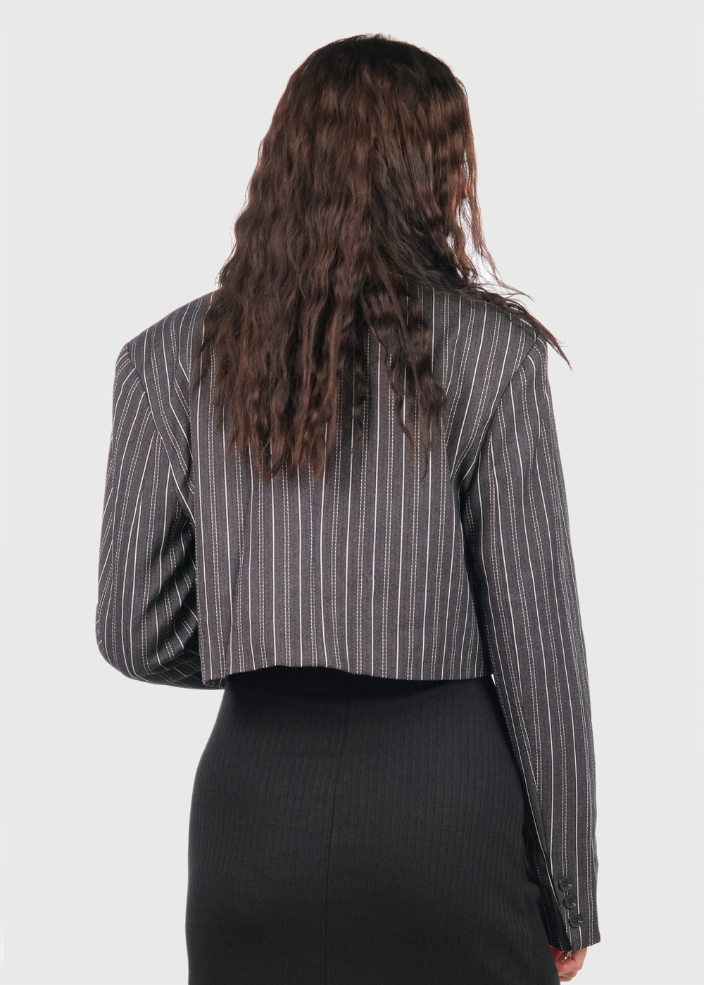Becca grey striped short blazer