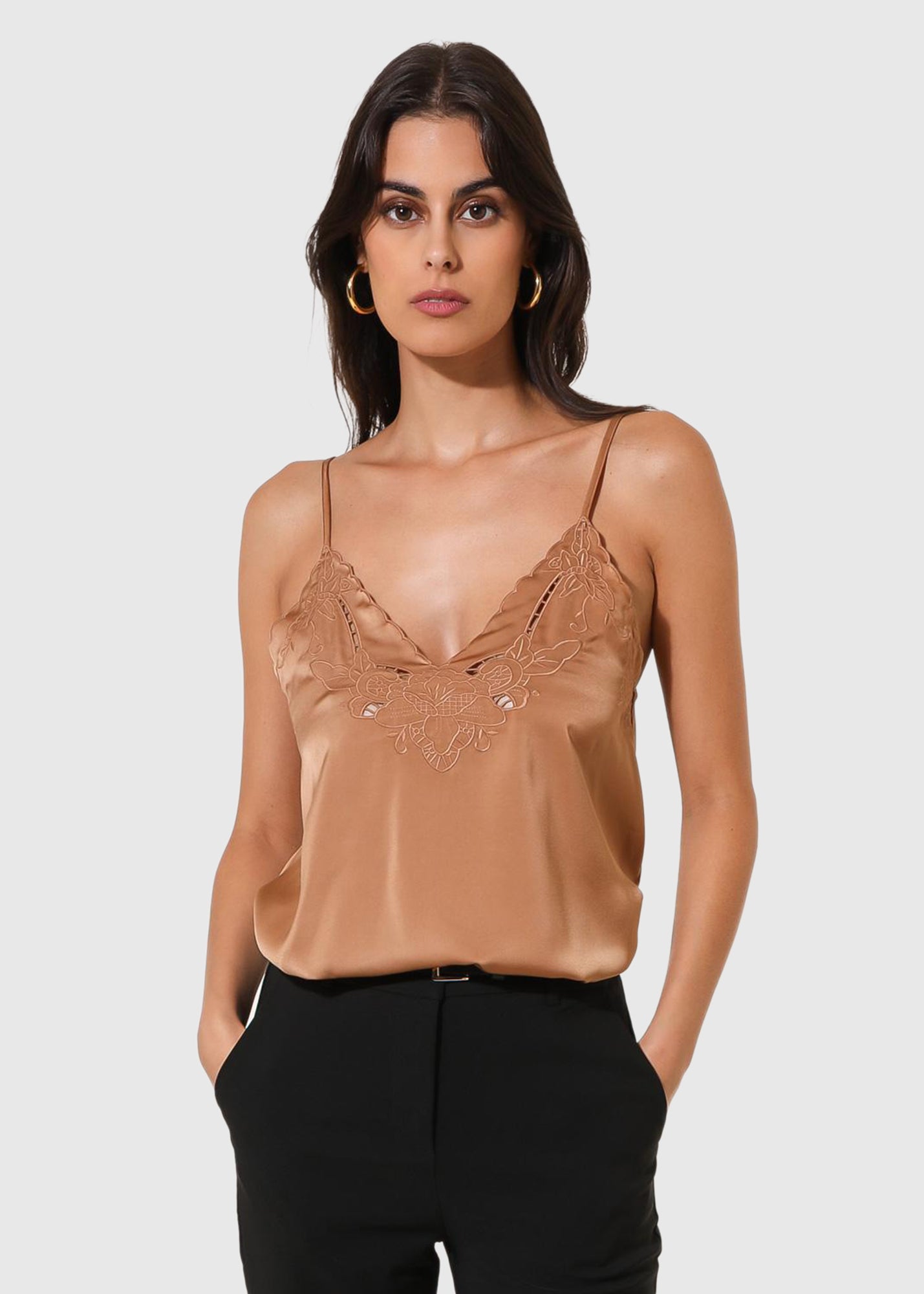 Crocifissa light brown thin shoulder straps top