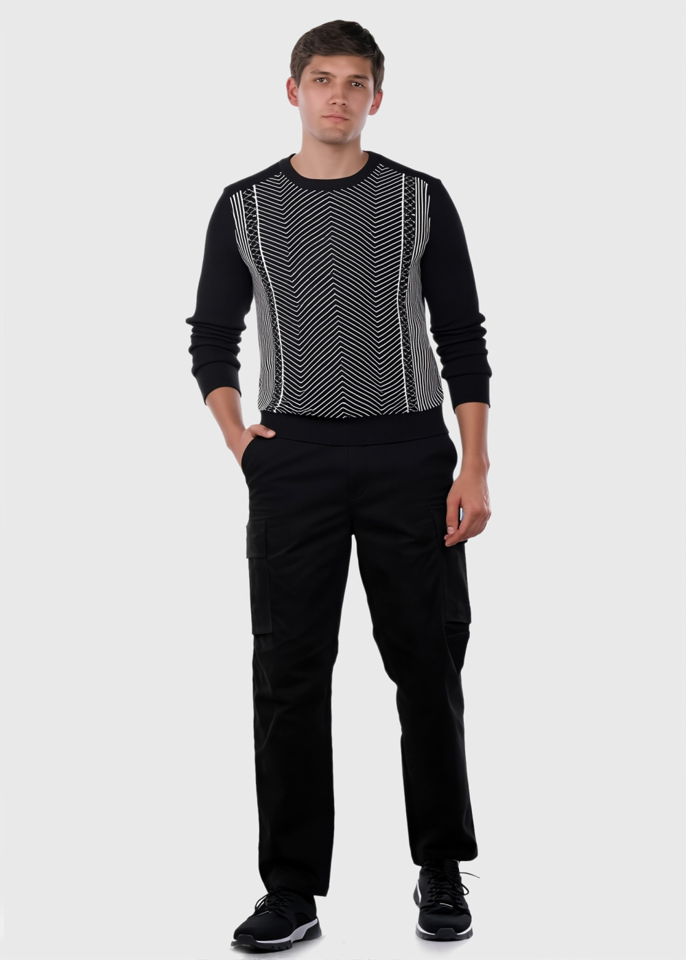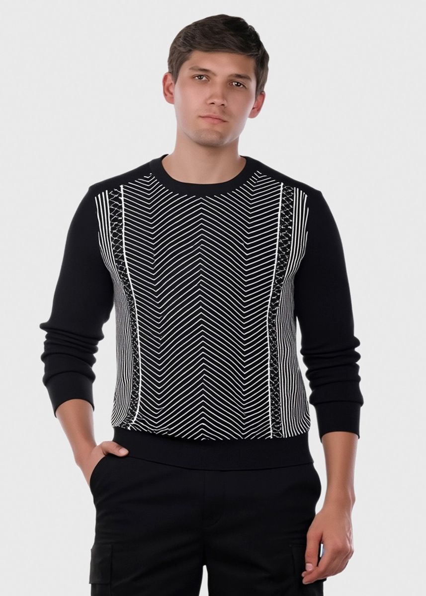 Javier black sweater in geometric print