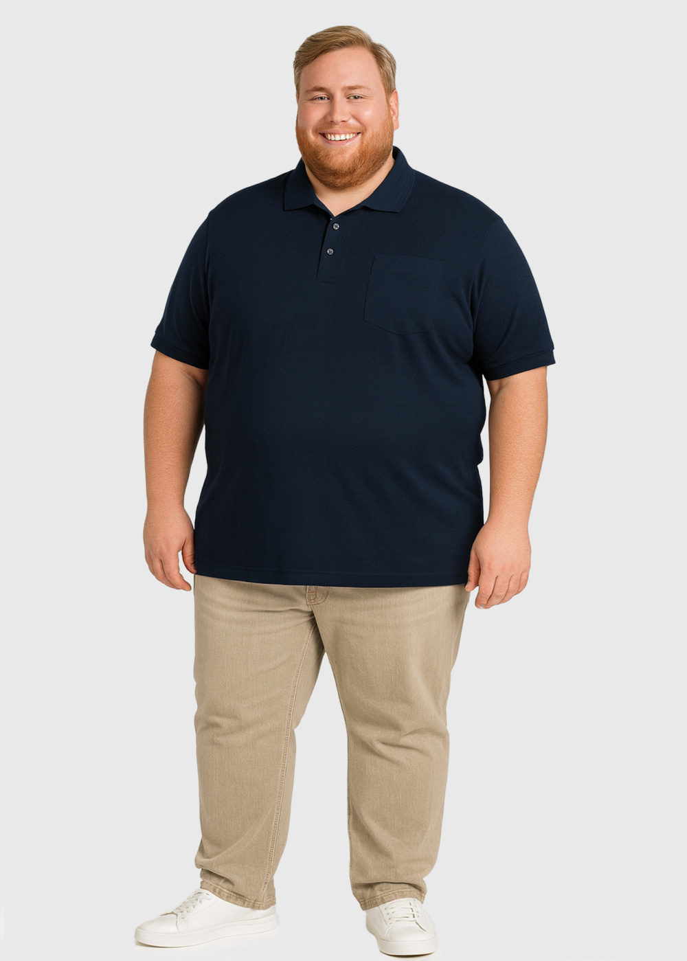 Rocco Plus Size dark blue men's Polo Shirt with pocket