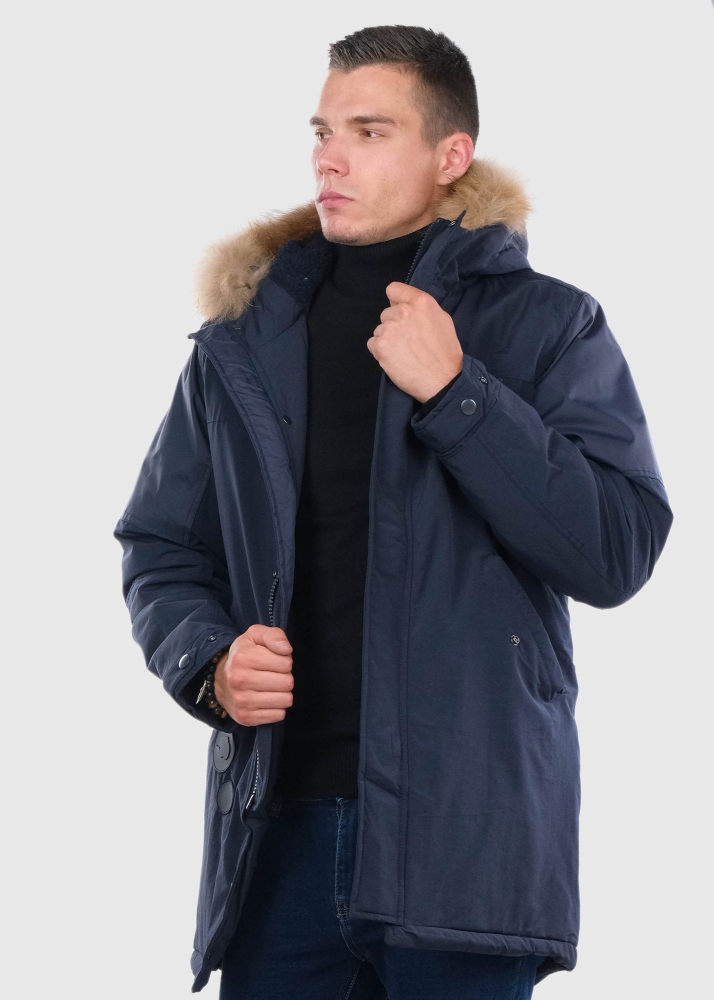 Giotto dark blue mens parka with fur trim Giotto dark blue mens parka with fur trim - back Giotto dark blue mens parka with fur trim