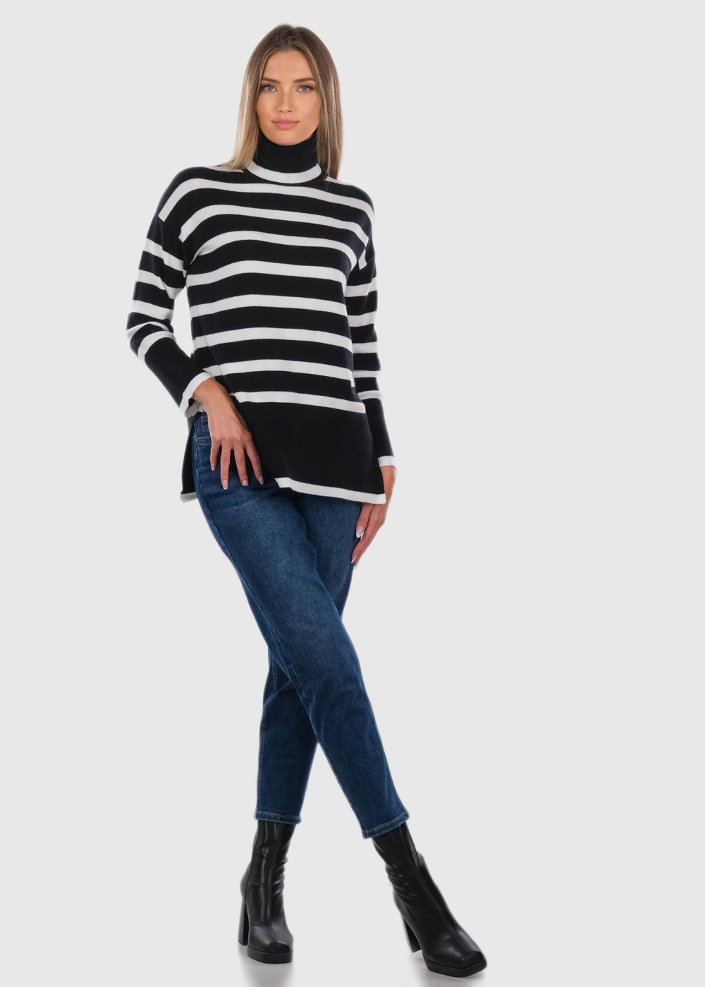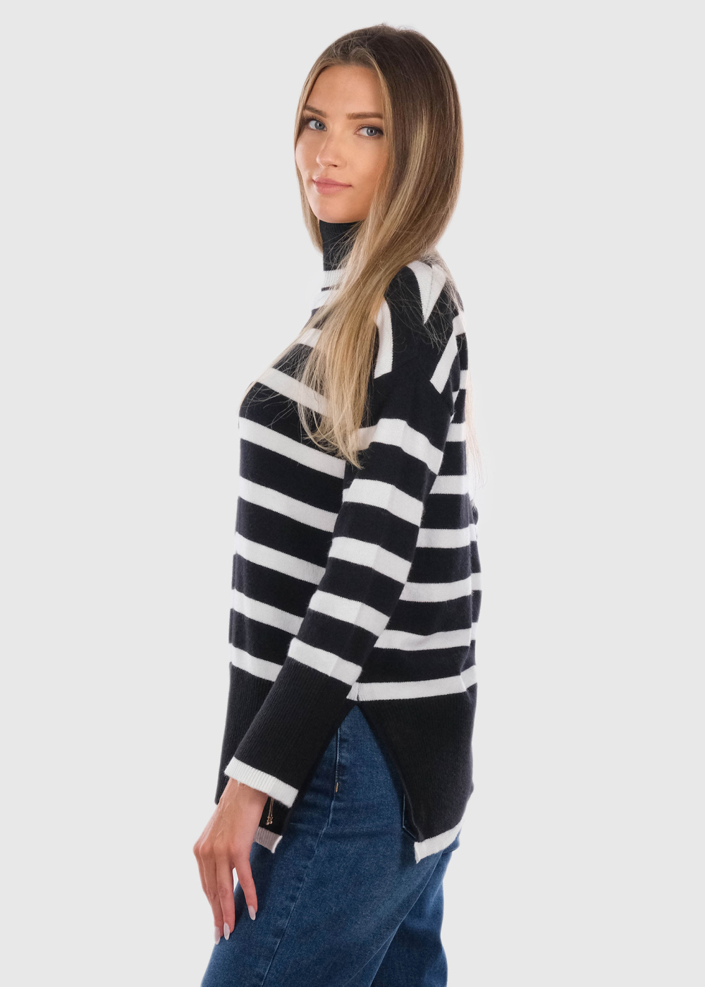 Elva черный свитер в полоску