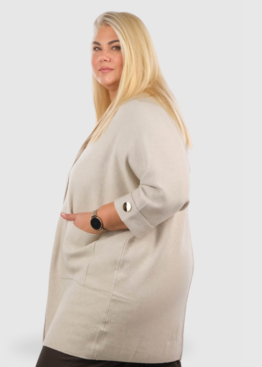 Jonna бежевый кардиган Большого размера с пуговицами