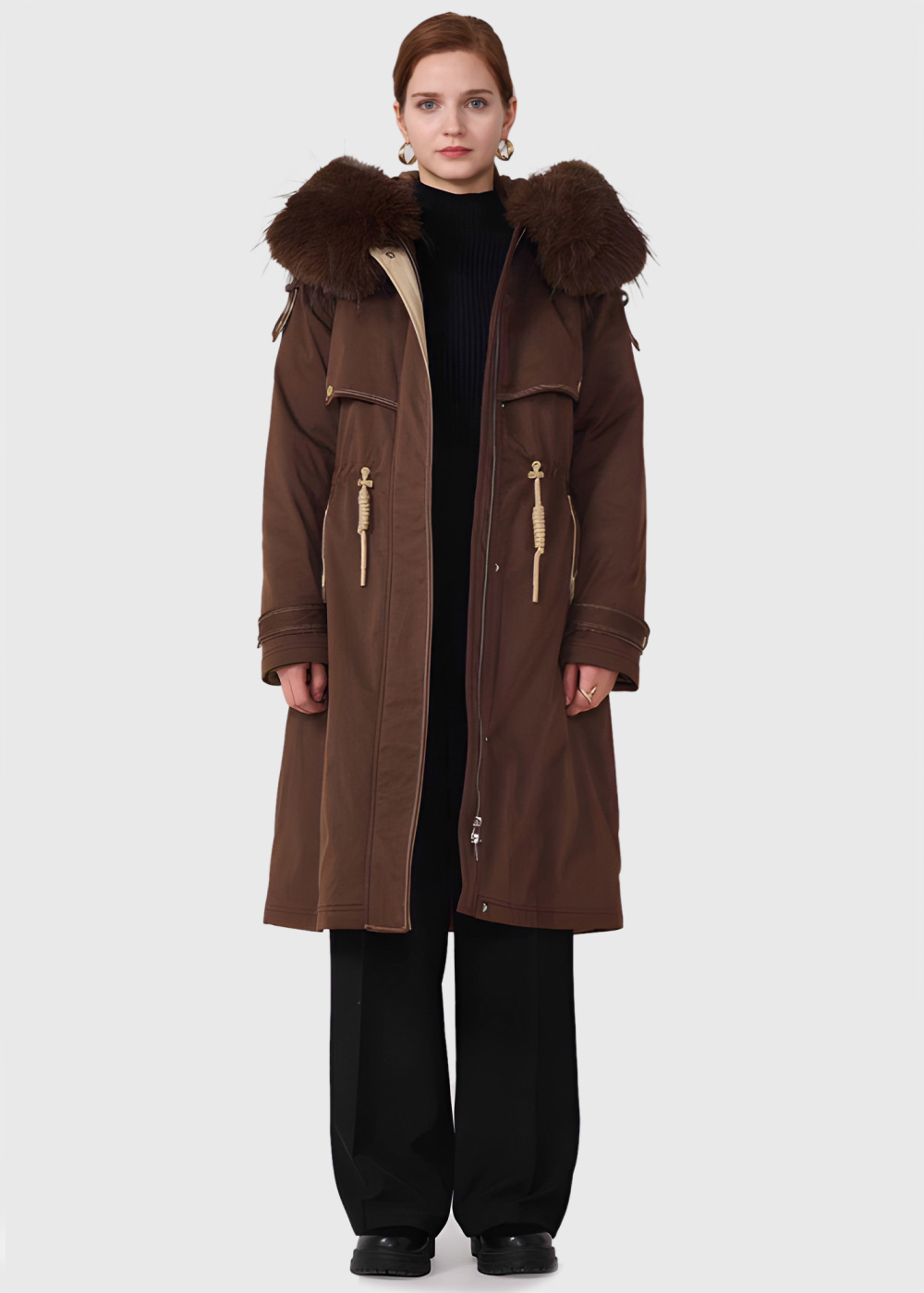 Lean коричневая удлиненная парка с капюшоном
