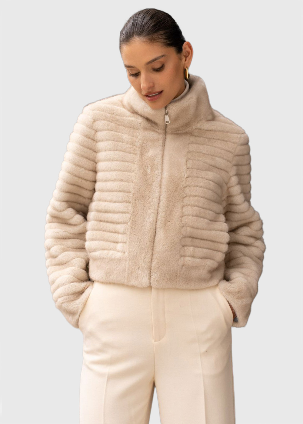 Nijole бежевая короткая шуба из искусственного меха