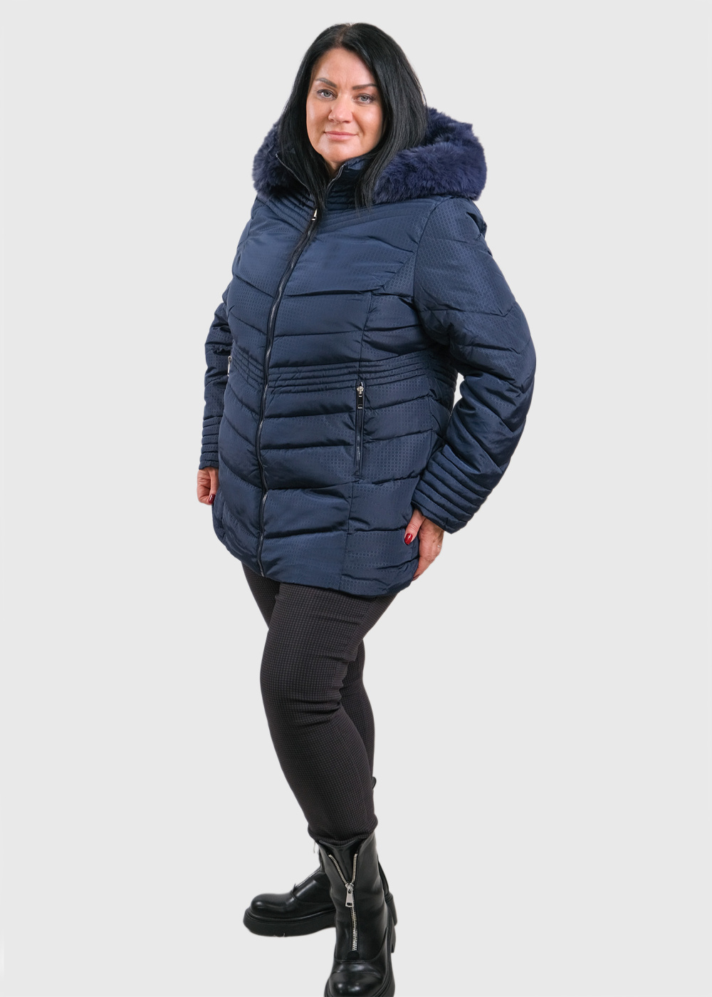 Faiza темно-синяя куртка Большого Размера с капюшоном