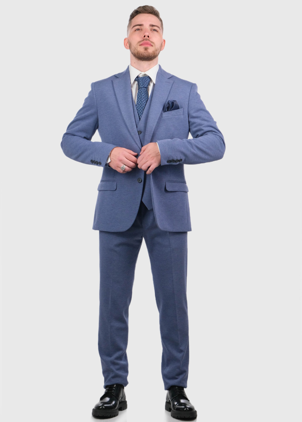 Chen синий приталенный костюм