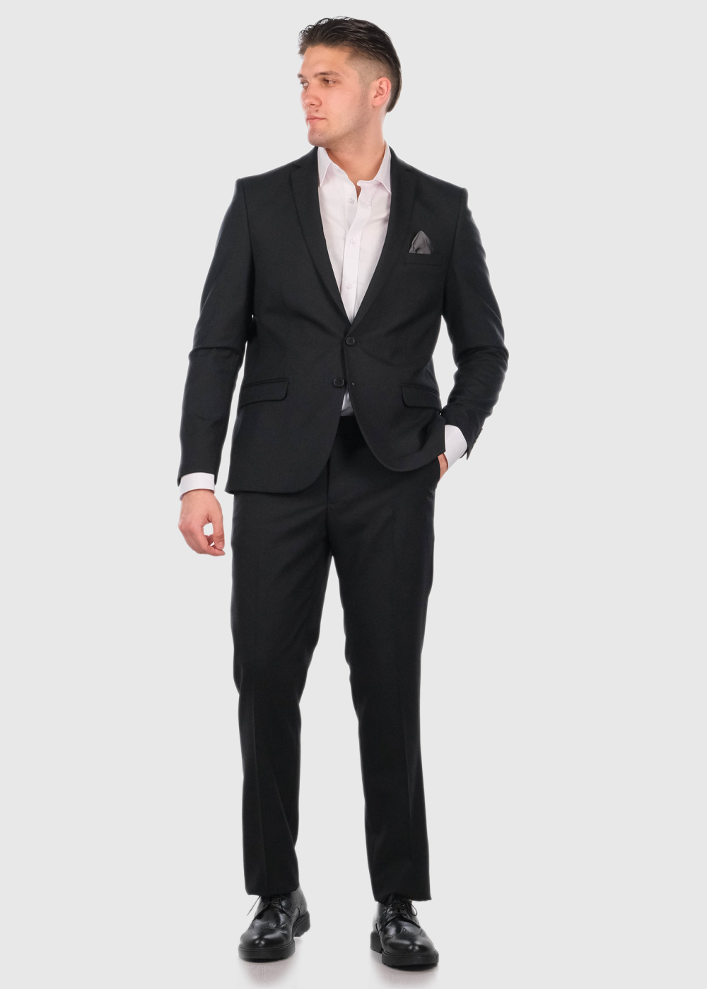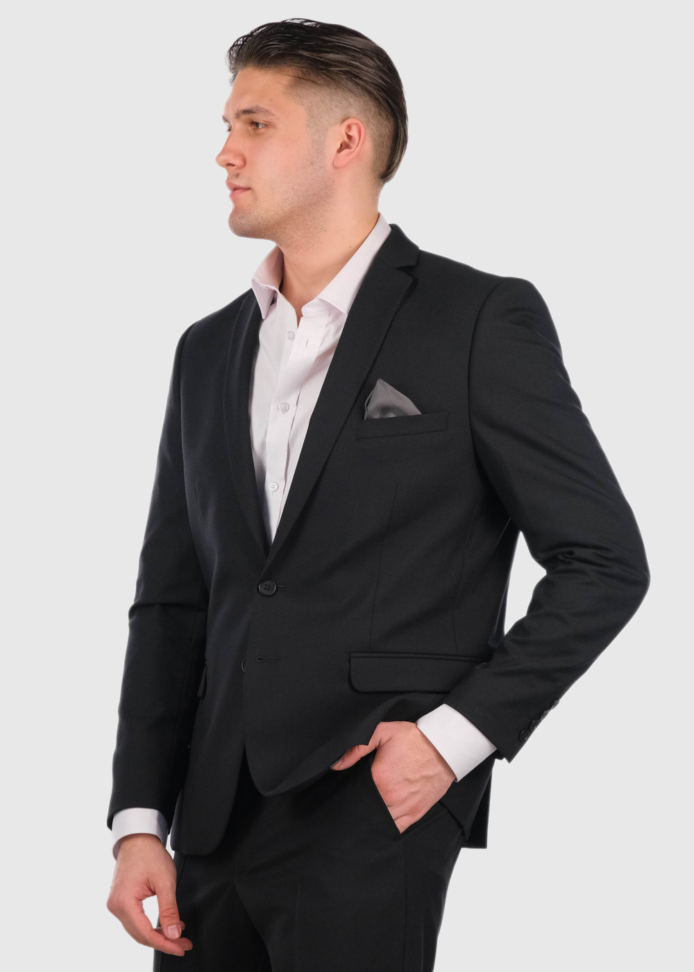 Cornelio черный приталенный костюм с шерстью