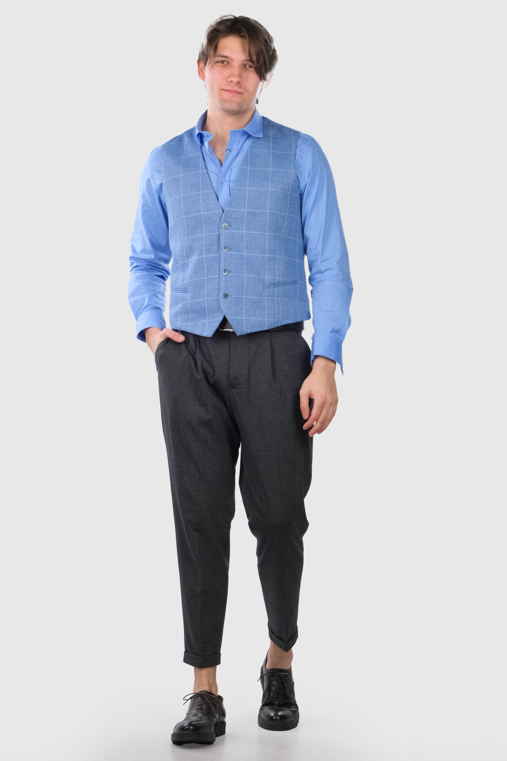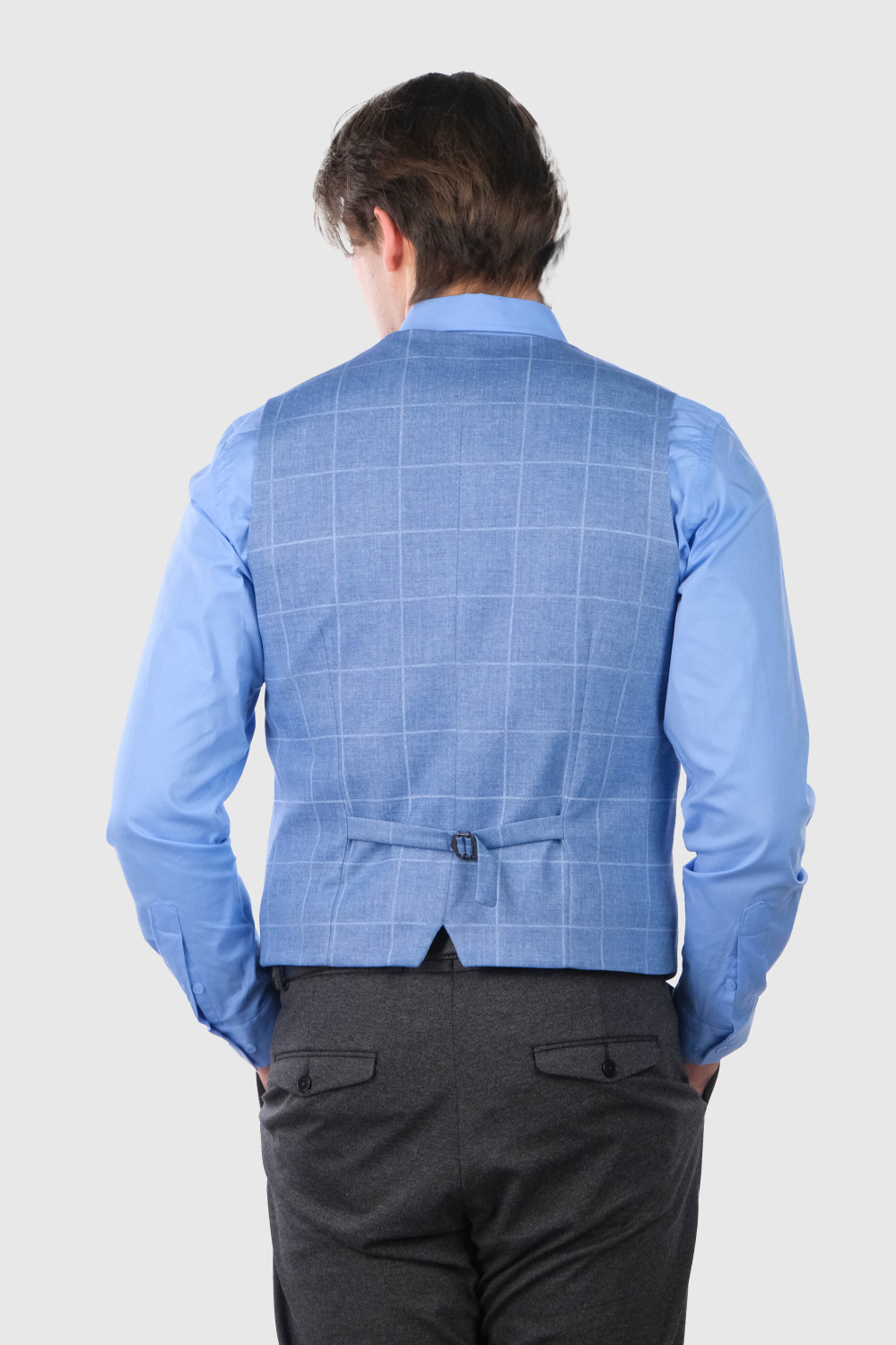 Justino голубая классическая клетчатая жилетка