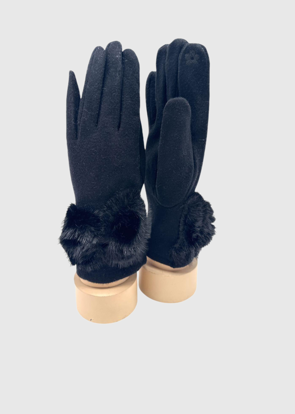 Zevide melni cimdi ar kažokādas iešuvumiem