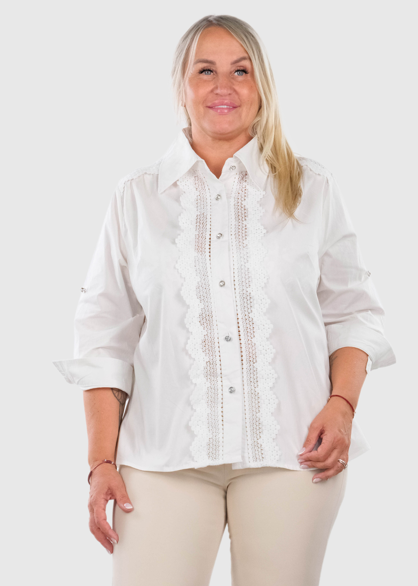 Adalheid Lielo izmēru balta blūze ar mežģīņu detaļām