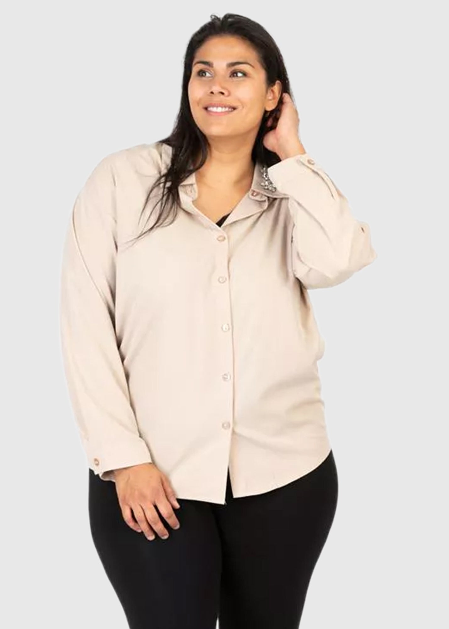 Amedea Lielo izmēru bēšs sieviešu krekls ar dekoru