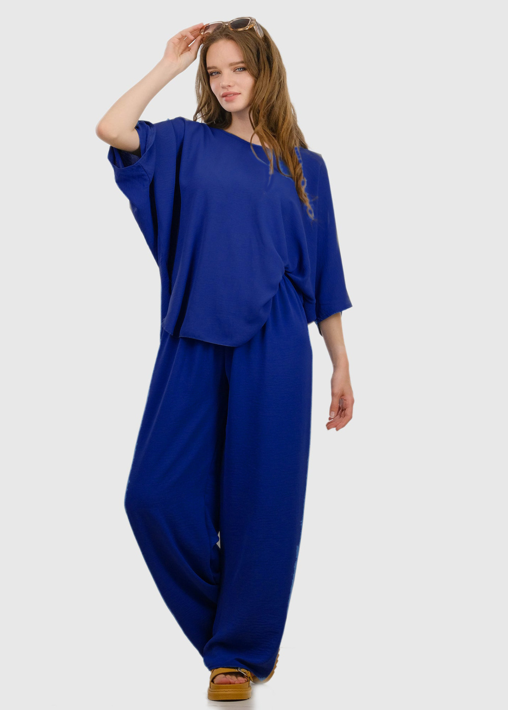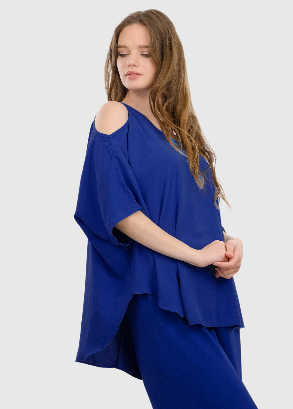 Sonia zila brīva piegriezuma blūze
