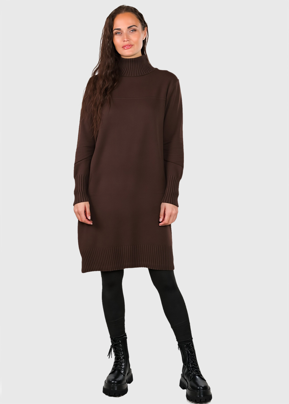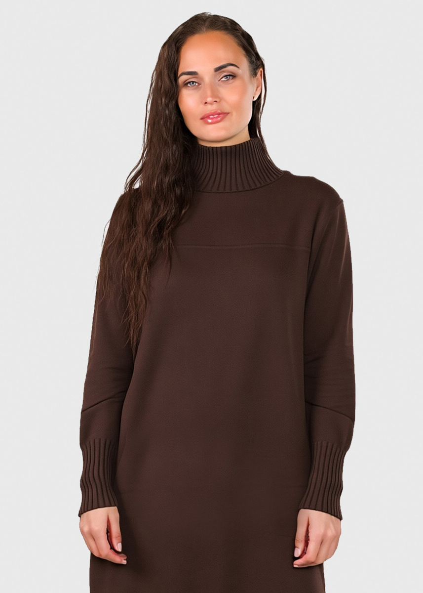 Annie brūna džemperkleita ar augstu apkakli