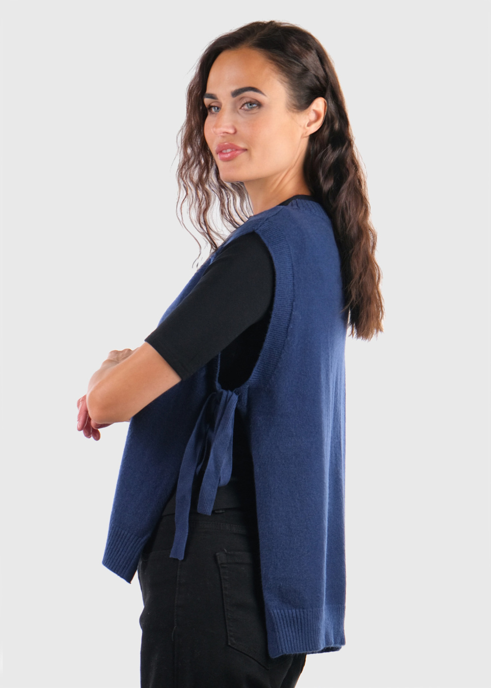 Karin zila veste ar aukliņām