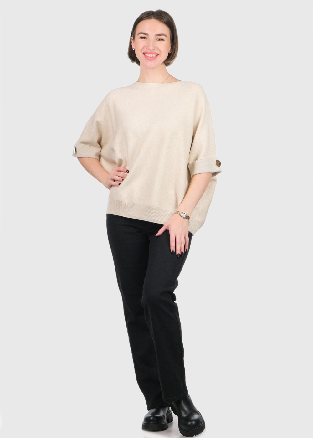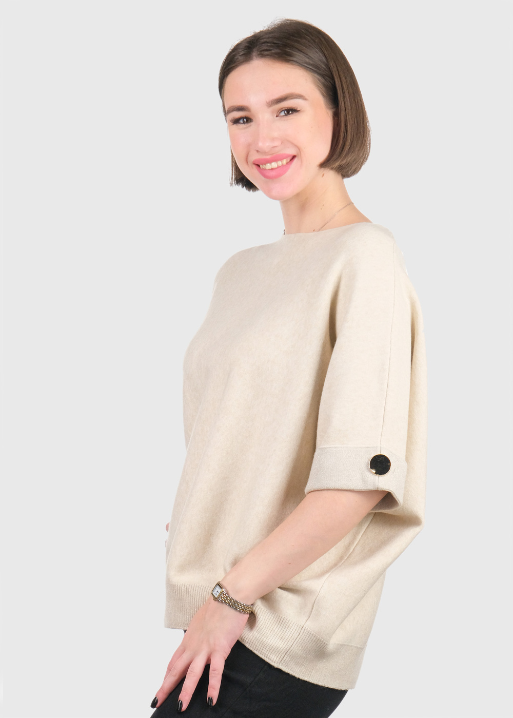 Pam gaiši bēšs džemperis ar trīs ceturtdaļu piedurknēm