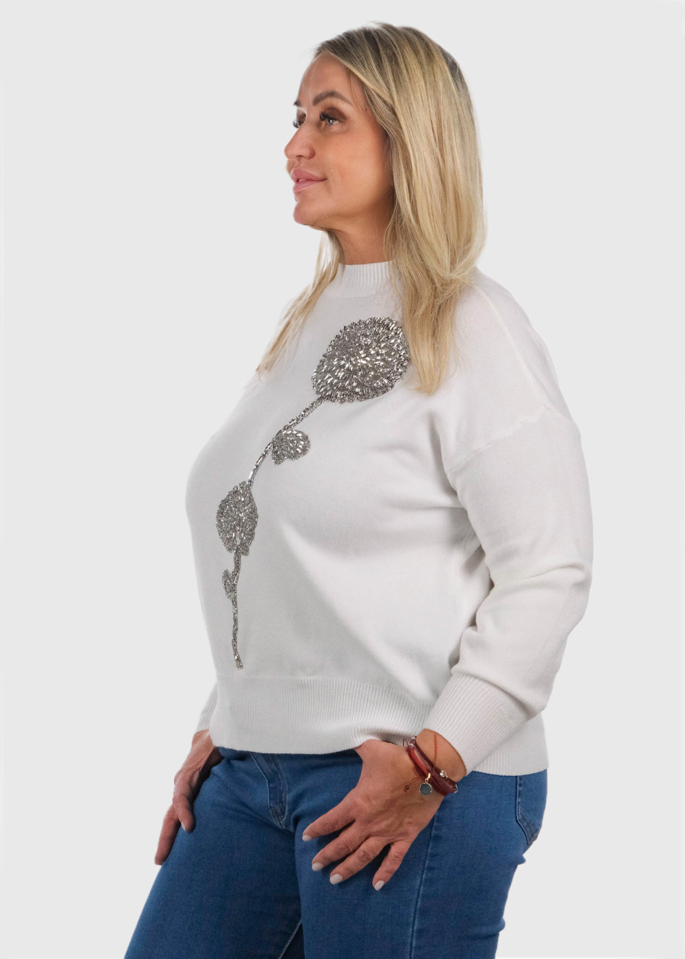 Airida Lielo izmēru balts džemperis ar aplikāciju