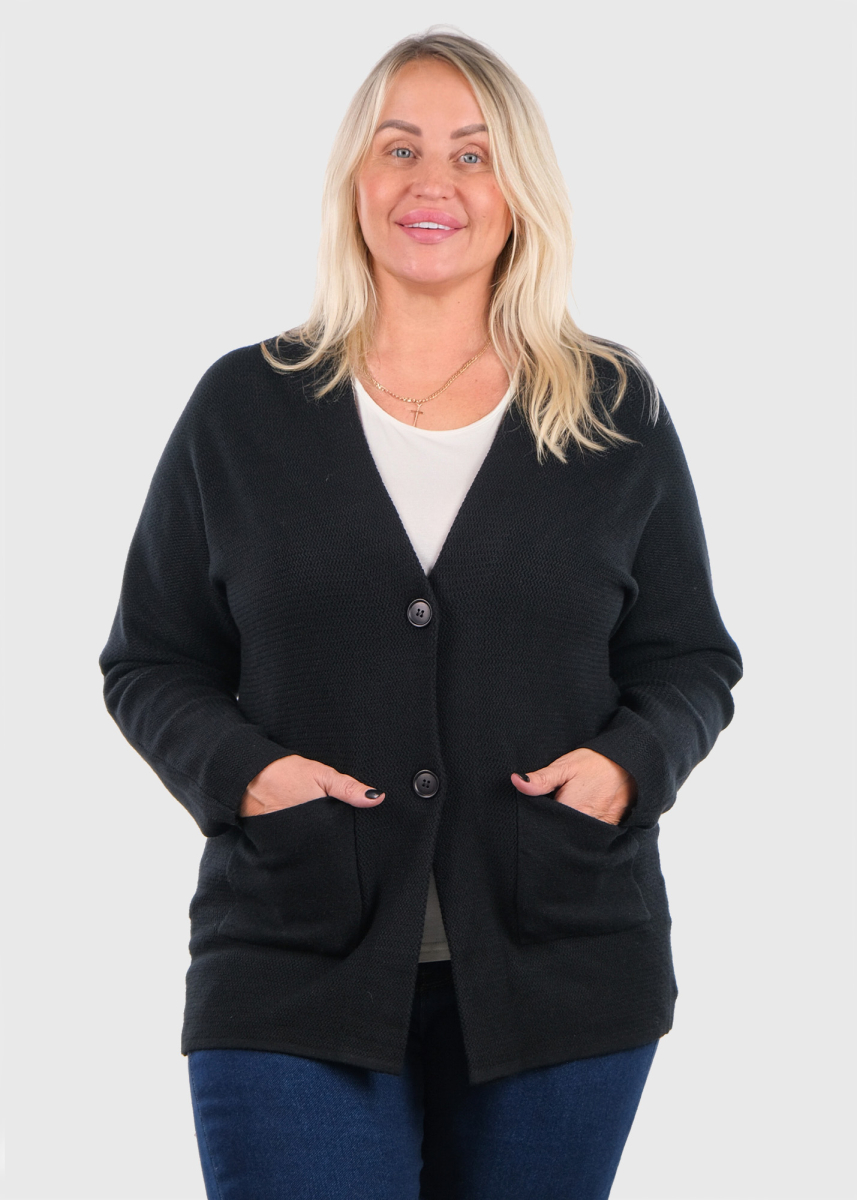 Katina melns kardigans ar kabatām