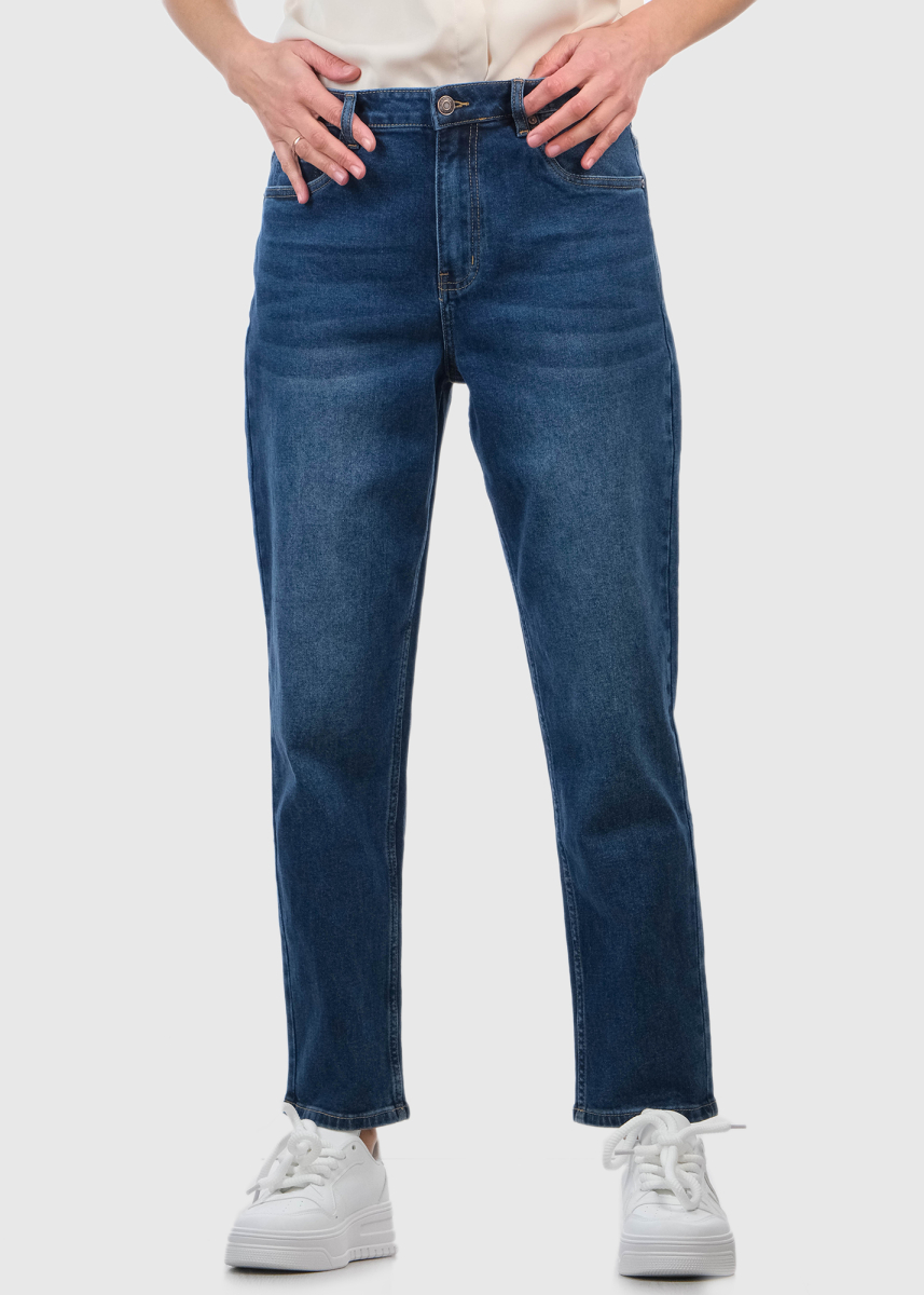 Crystal Mom Fit zili sieviešu džinsi