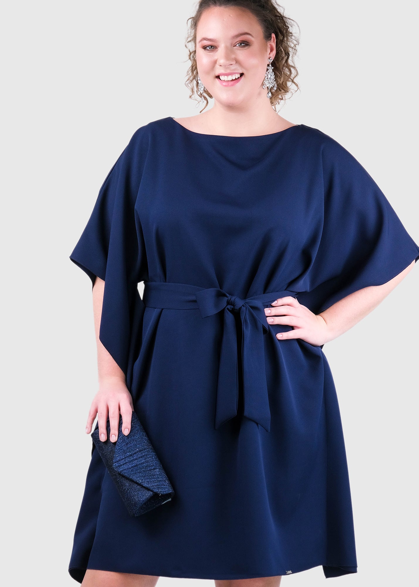 Agata Lielo izmēru tumši zila kleita ar jostu
