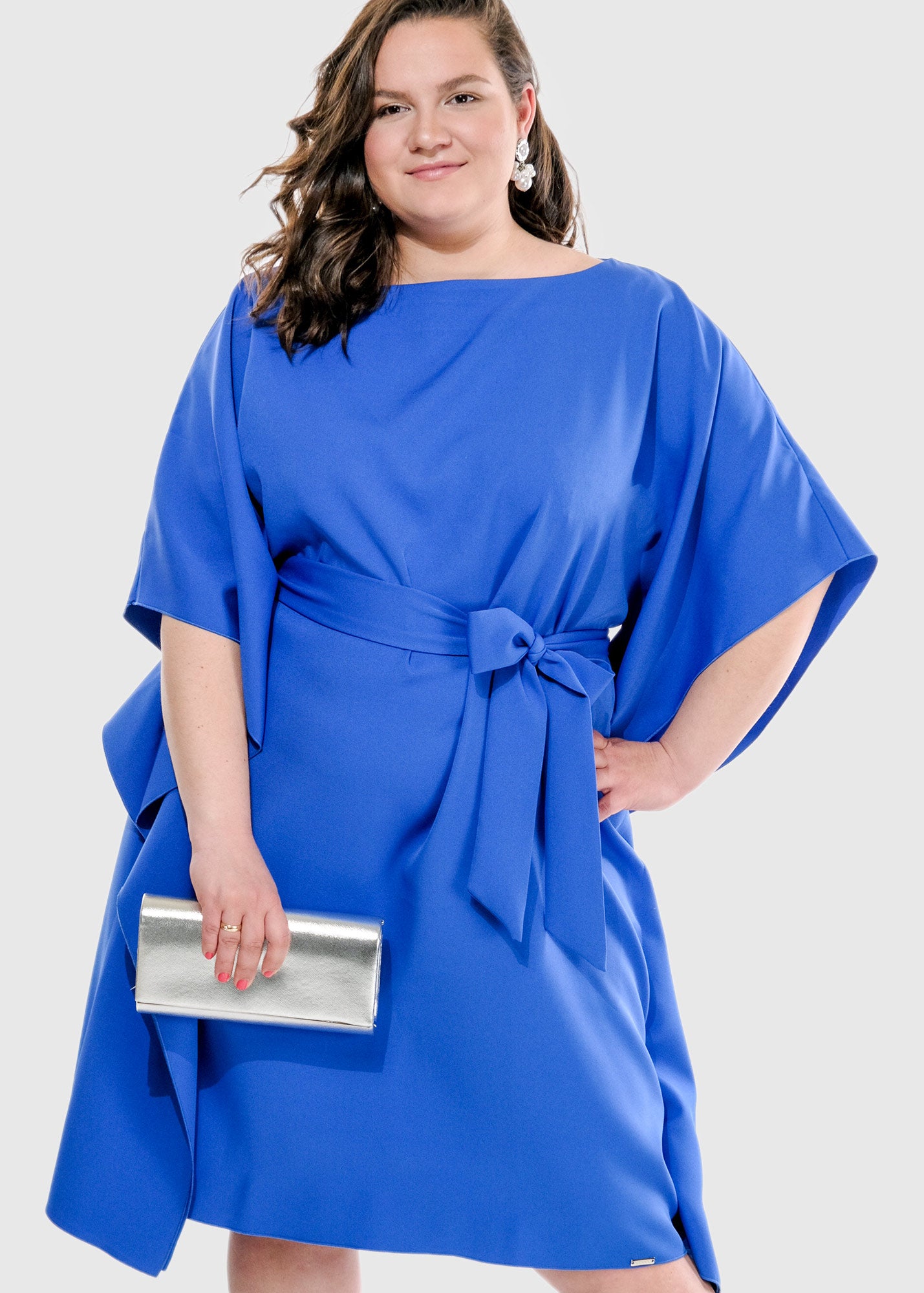 Agata Lielo izmēru zila brīvas piegrieztnes kleita ar jostu