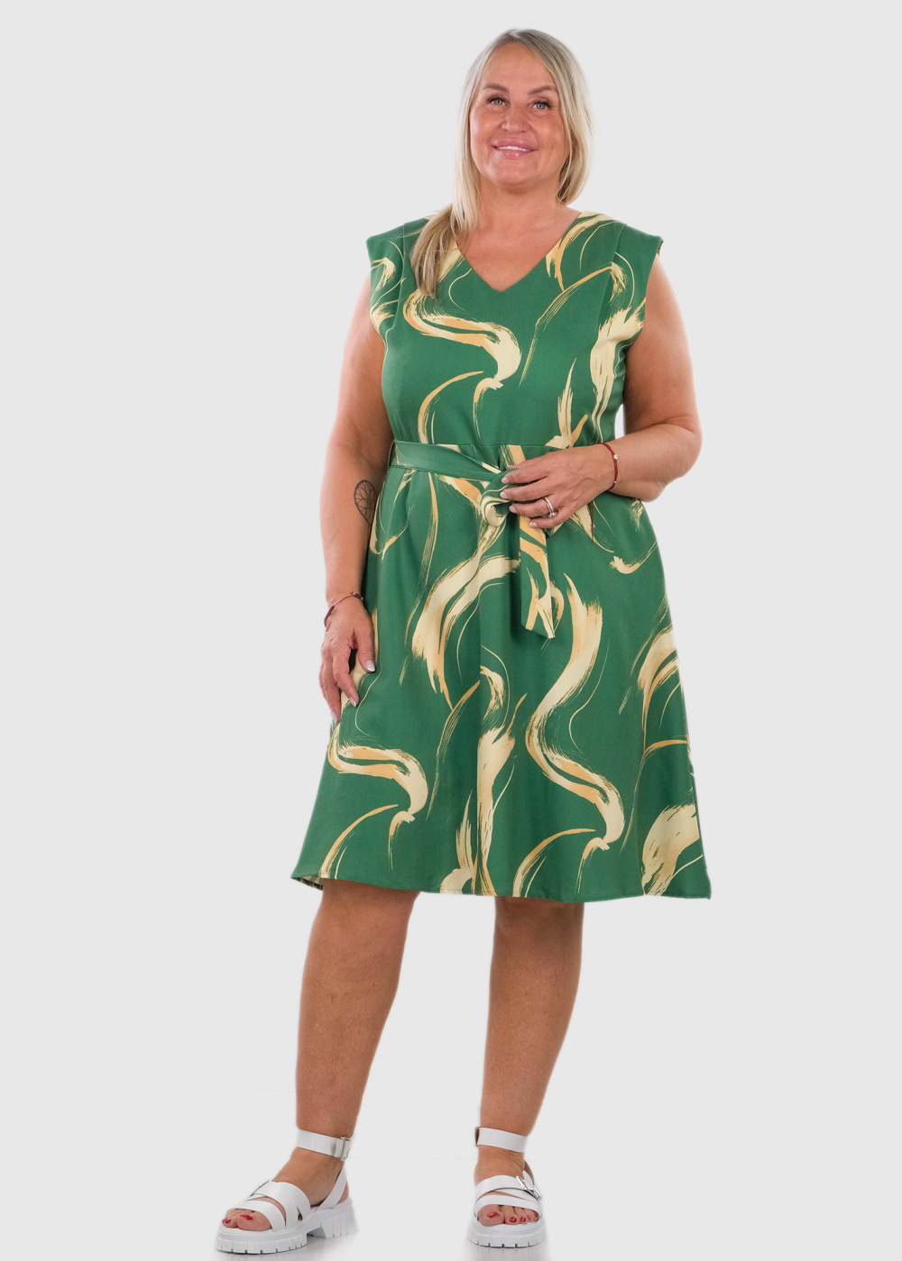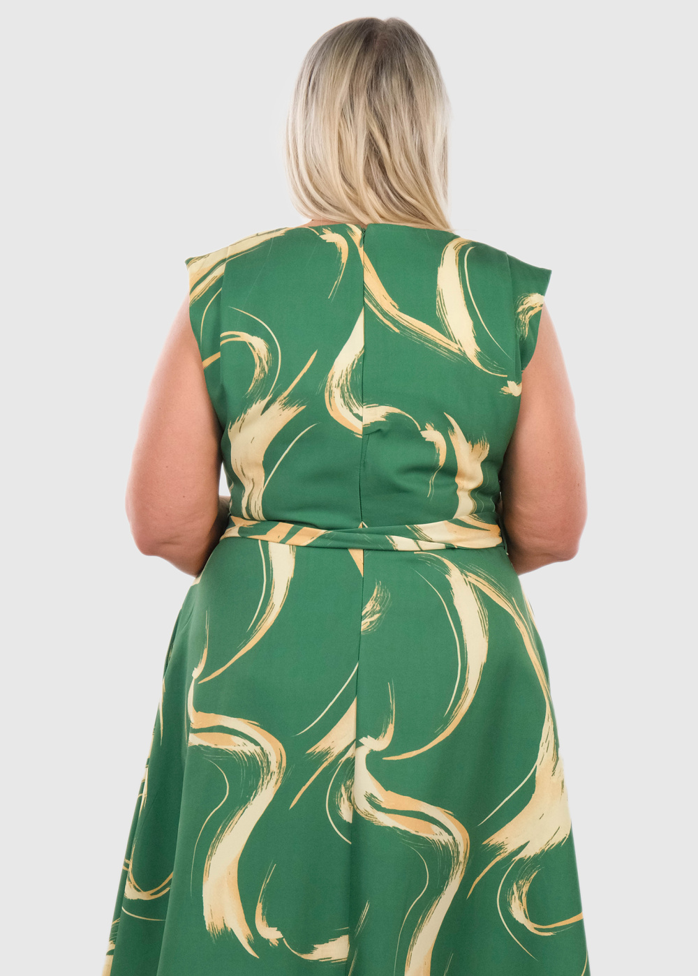 Anzu Lielo izmēru zaļa īsa vakarkleita ar rakstu