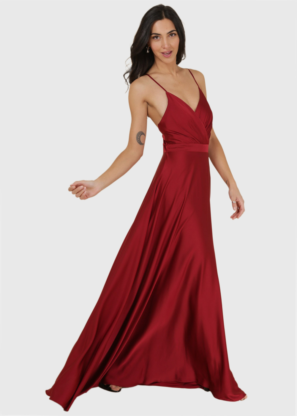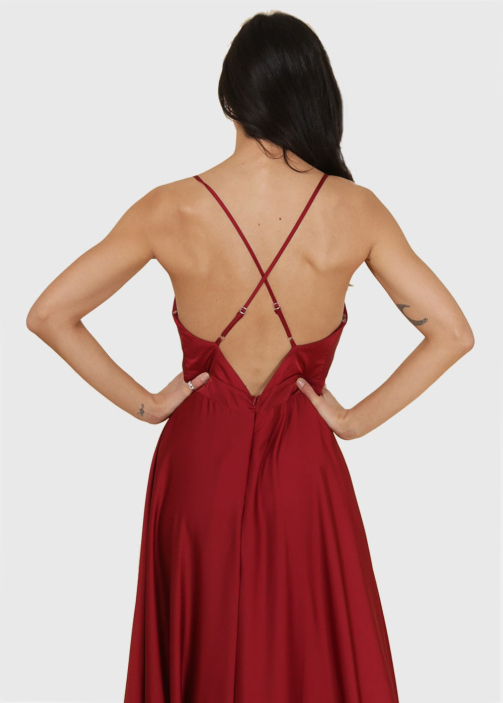 Ardina sarkana vakarkleita ar atvērtu muguru