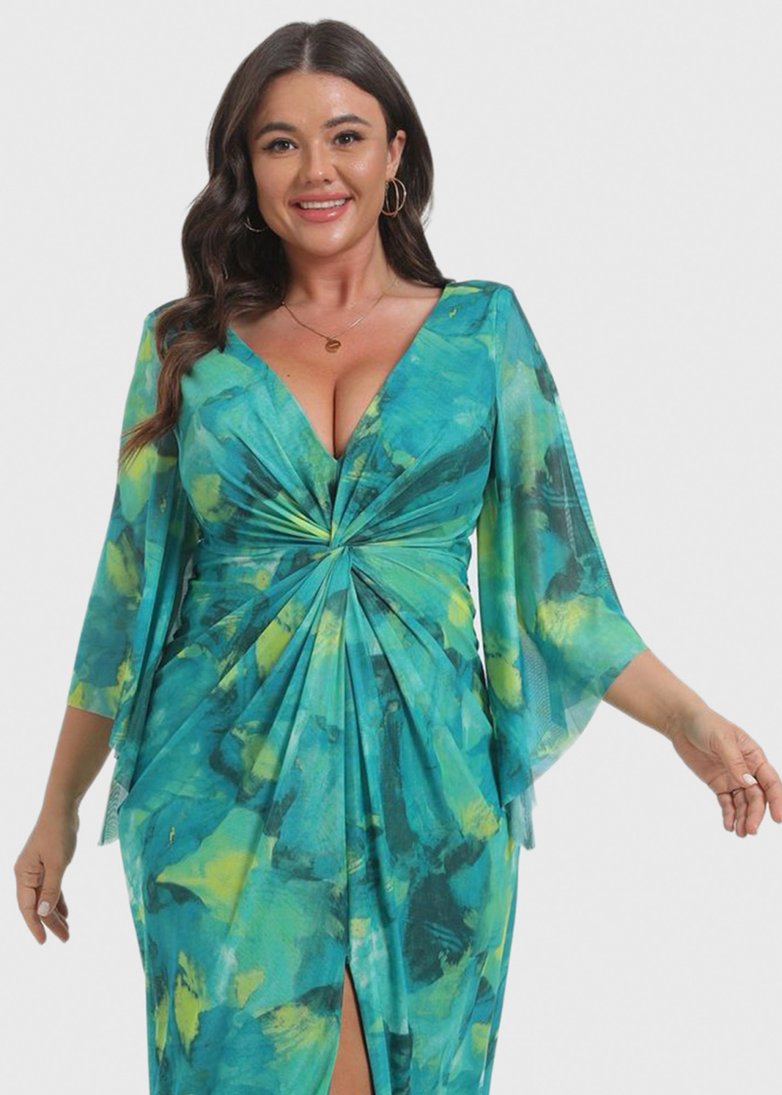 Janelle Lielo izmēru zaļa vakarkleita ar šķēlumu