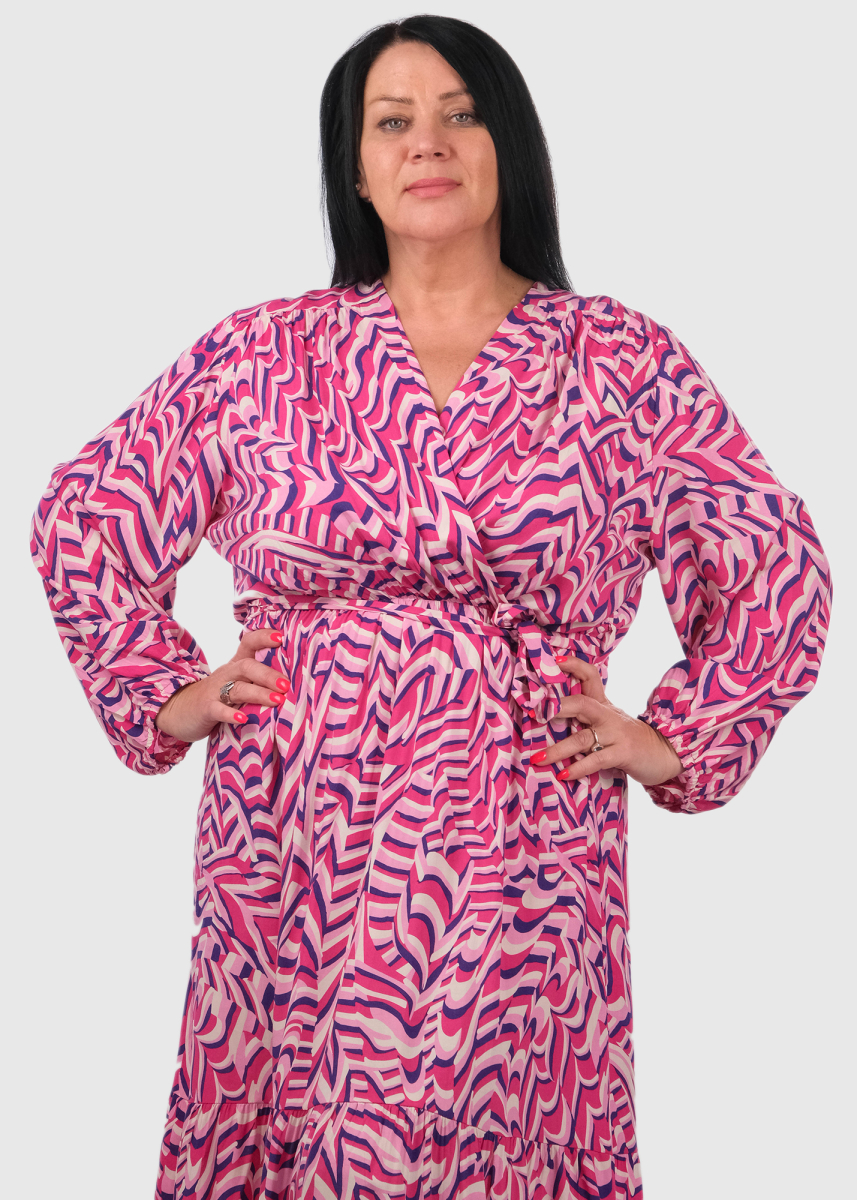 Apolonia Lielo izmēru rozā gara kleita ar printu
