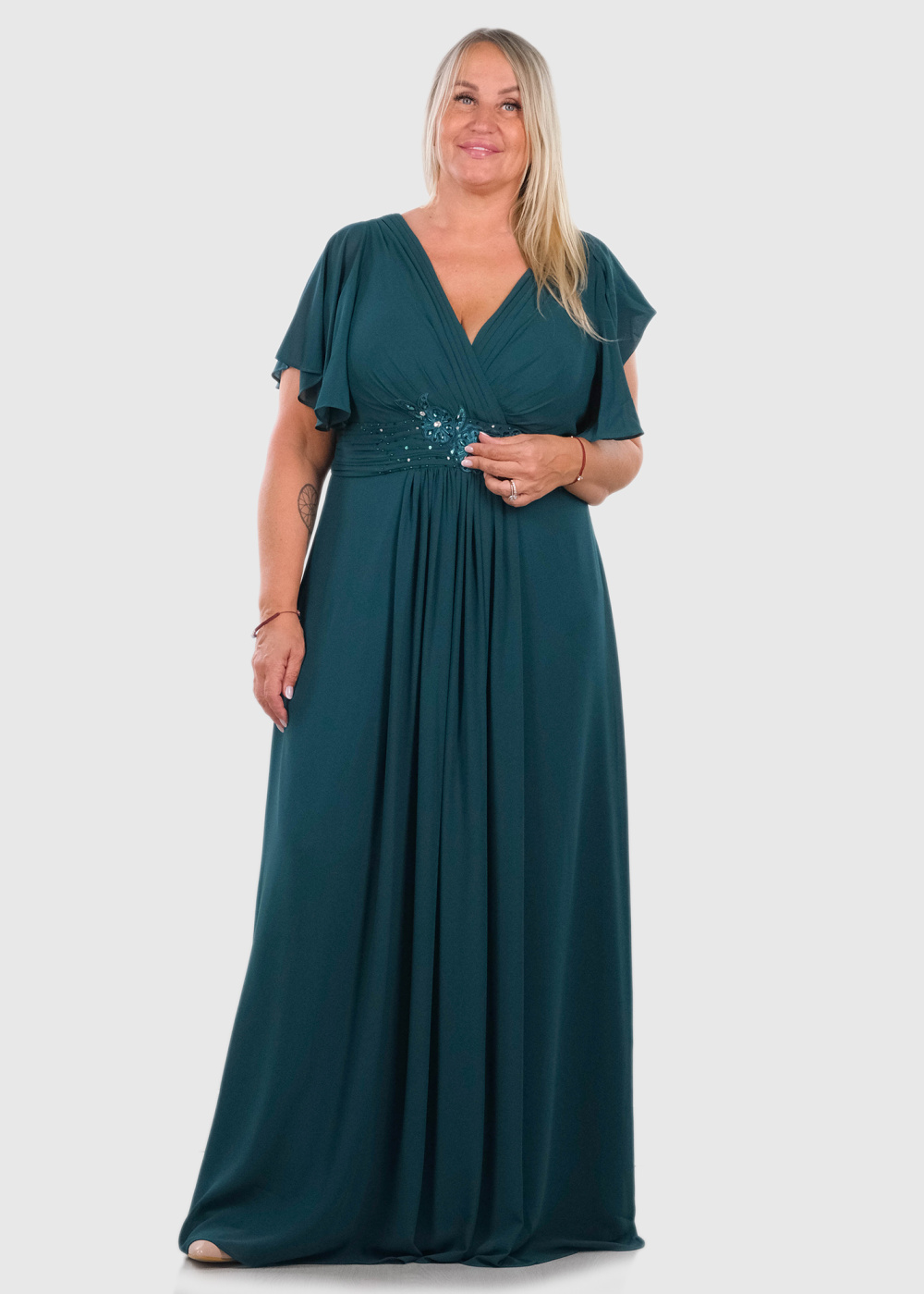 Bruna Lielo izmēru zaļa gara vakarkleita
