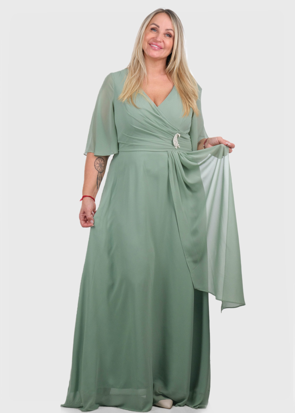 Ellis Lielo izmēru gaiši zaļa gara vakarkleita
