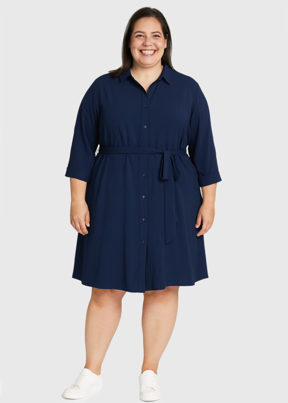 Tavita Lielo izmēru tumši zila kleita ar jostu