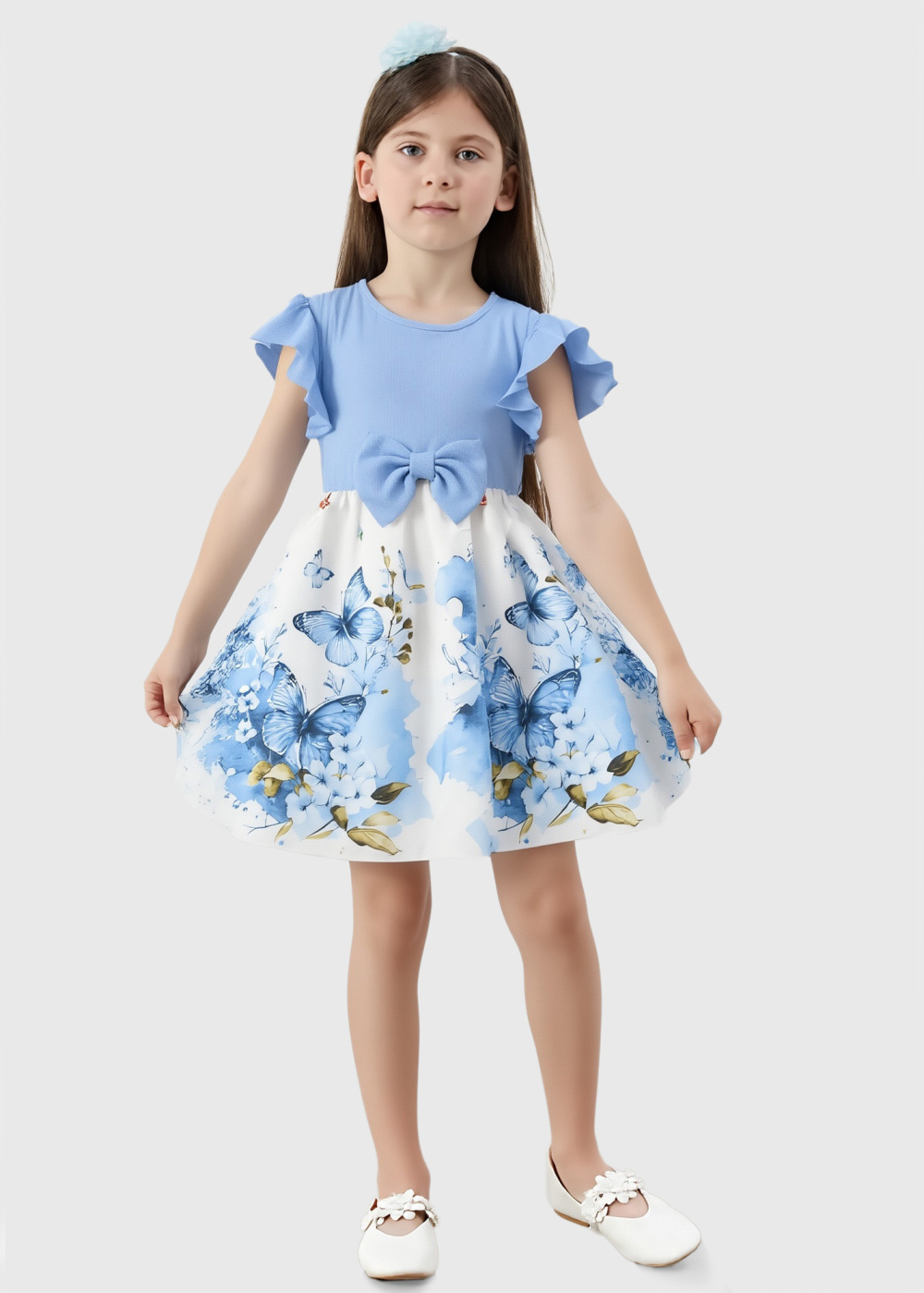 Libi gaiši zila kleita ar rakstu