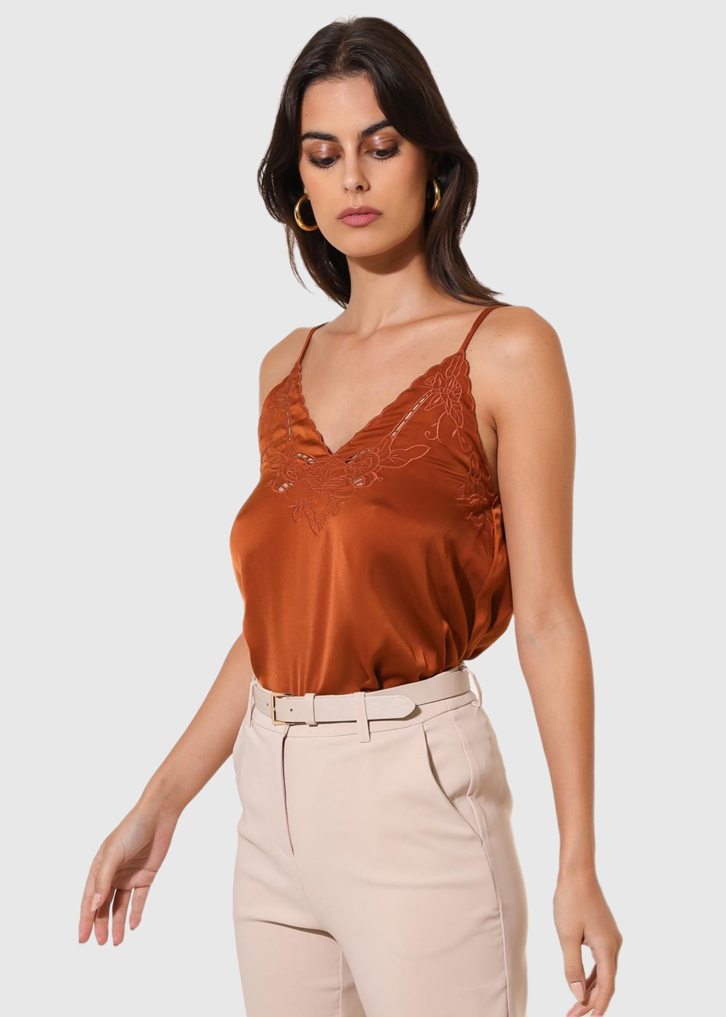 Crocifissa oranžs tops ar plānām lencītēm