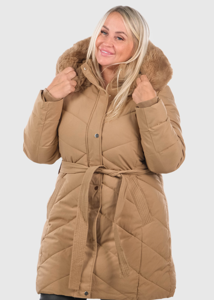 Davina Lielo izmēru gaiši brūna sieviešu jaka ar jostu