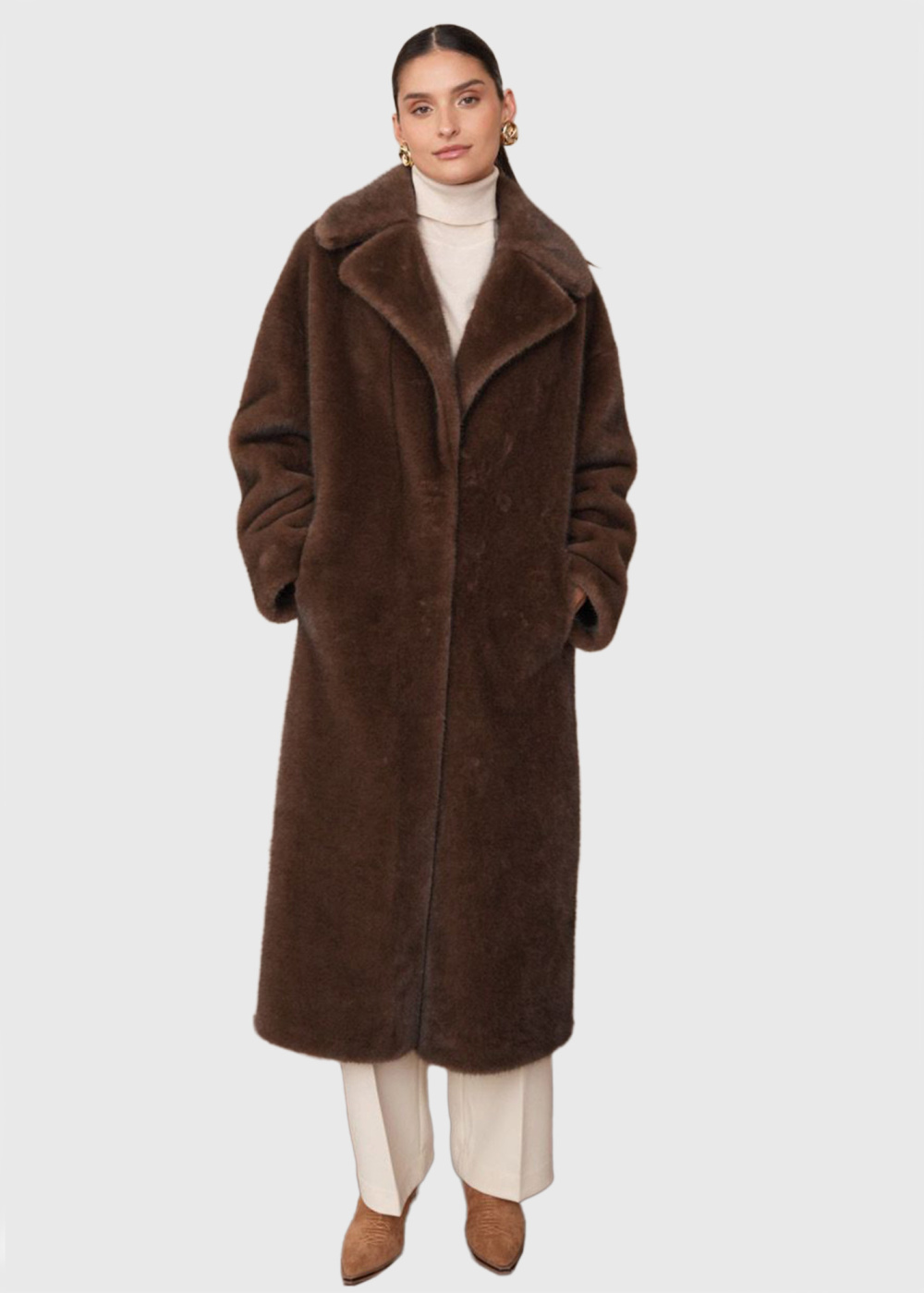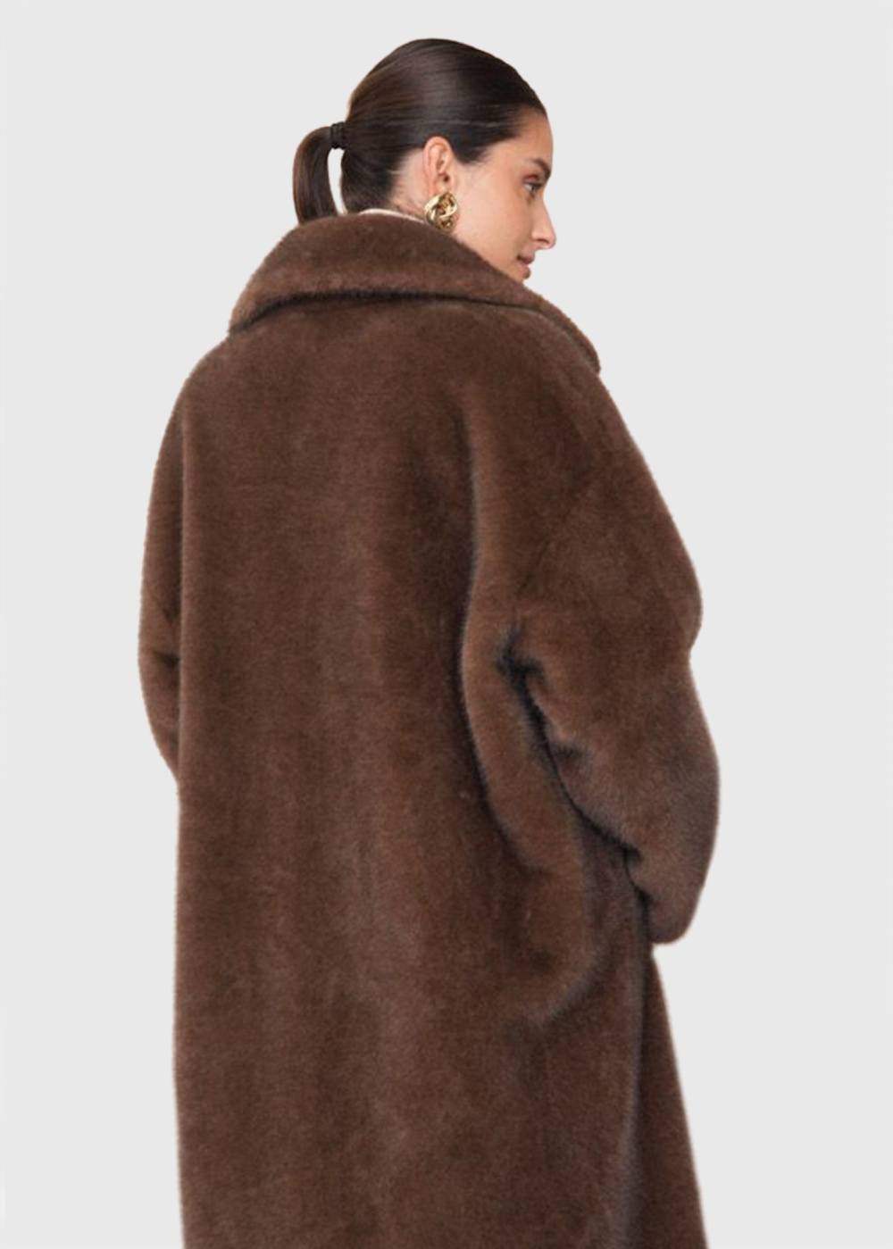 Liza tumši brūns garais mākslīgās kažokādas mētelis