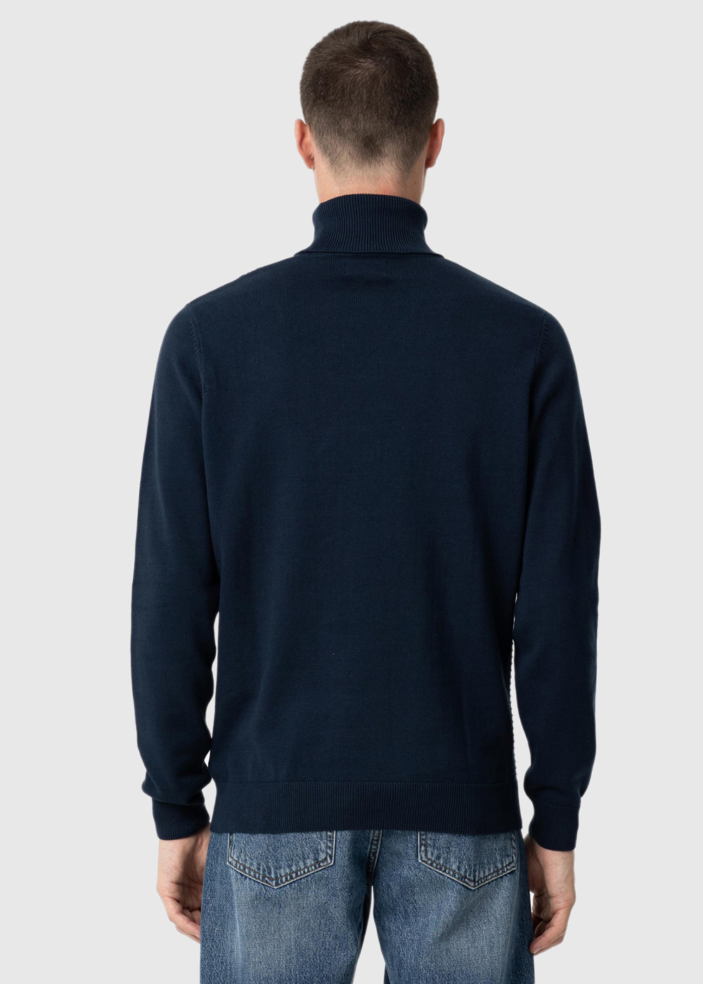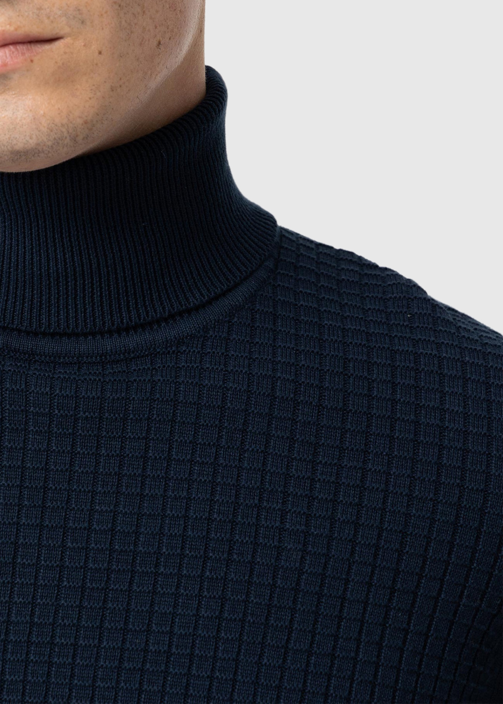 Tumši zils tekstūras džemperis ar augsto apkakli