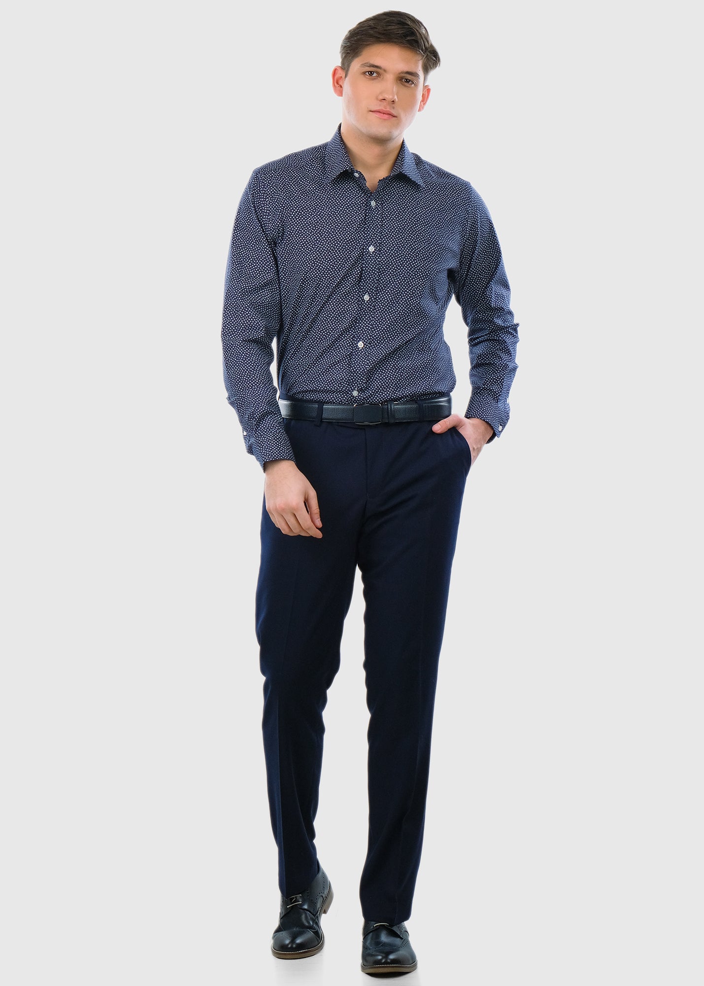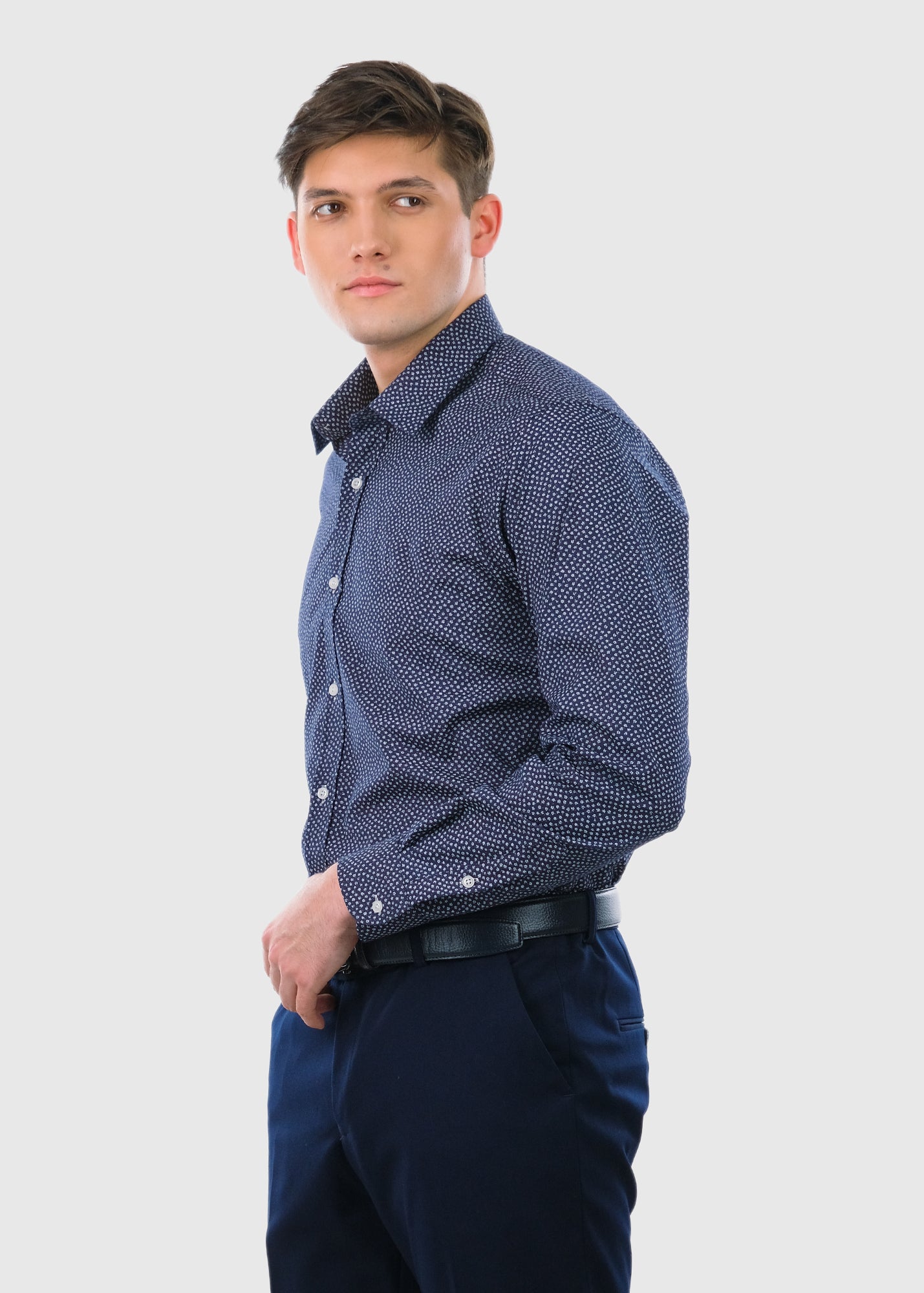 Slim Fit tumši zils vīriešu krekls ar ziedu rakstu