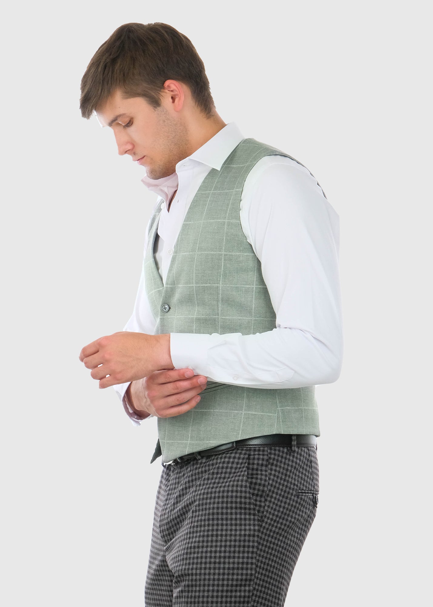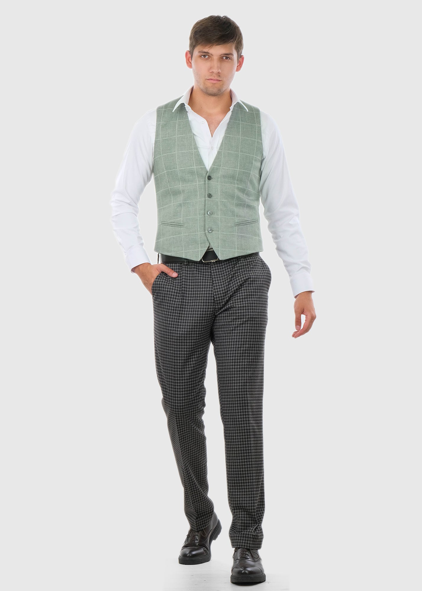 Angelo gaiši zaļa klasiska rūtainā veste