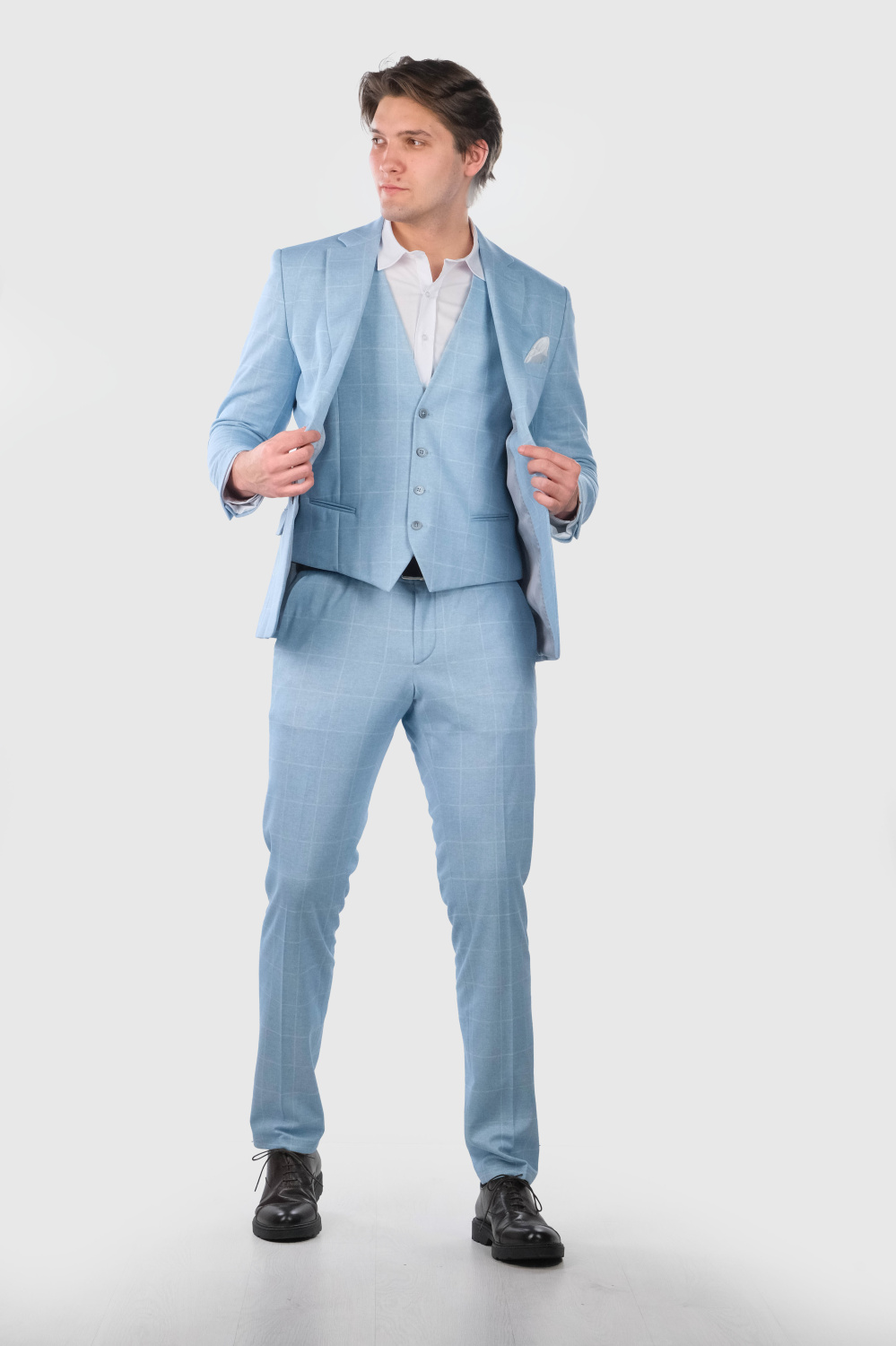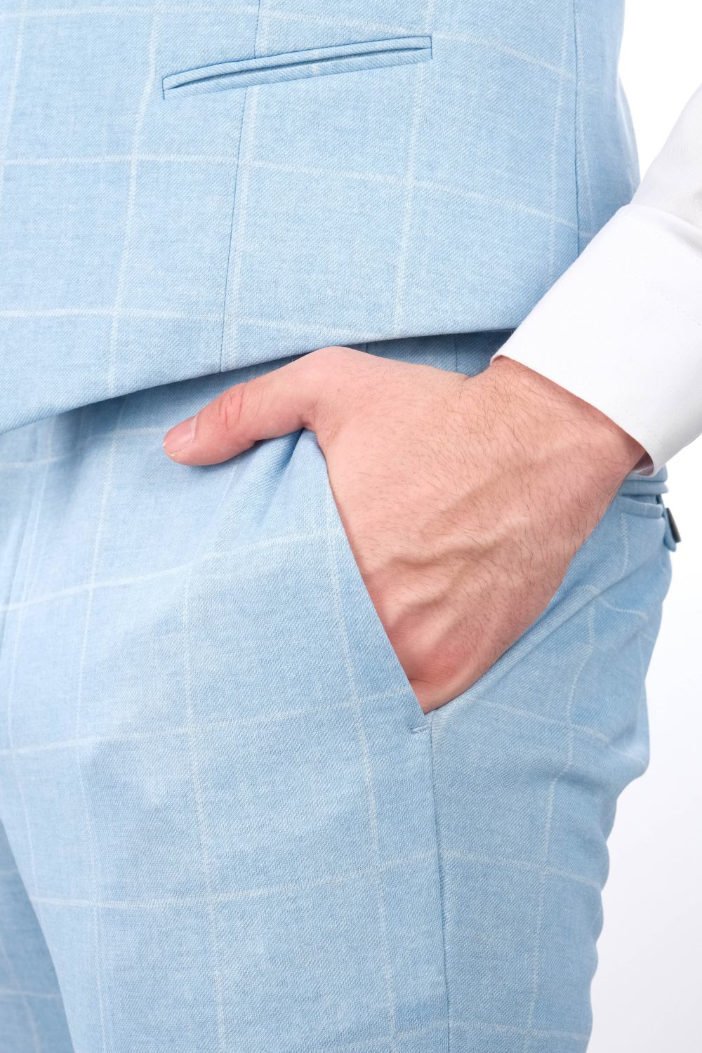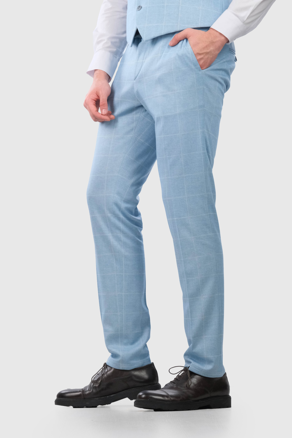Eduardo gaiši zilas rūtainas vīriešu bikses