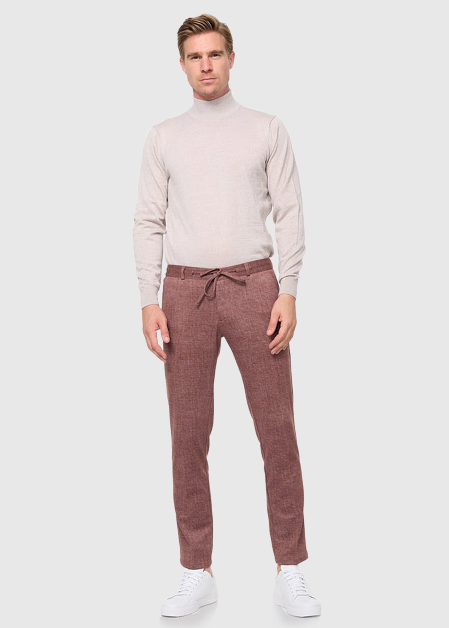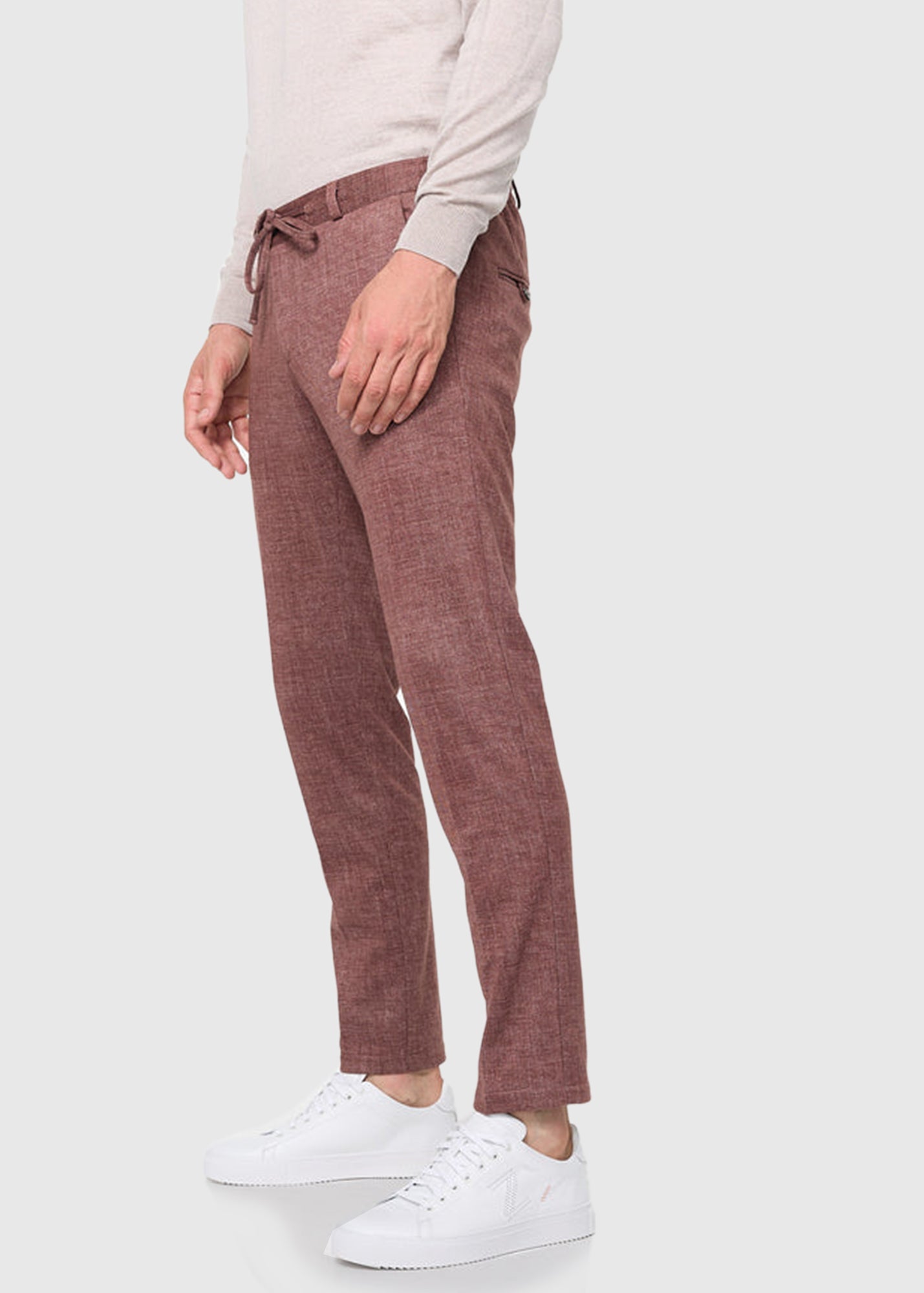 Elio Slim Fit brūnas vīriešu bikses ar aukliņas aizdari