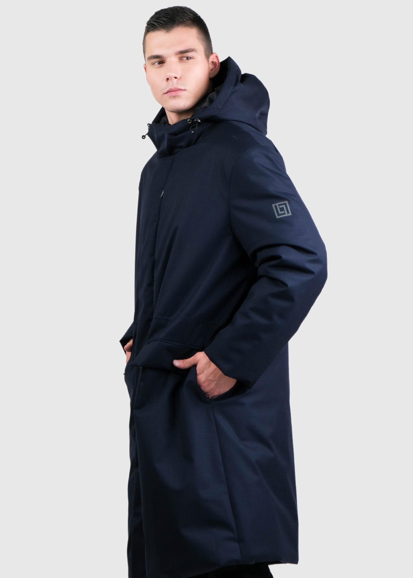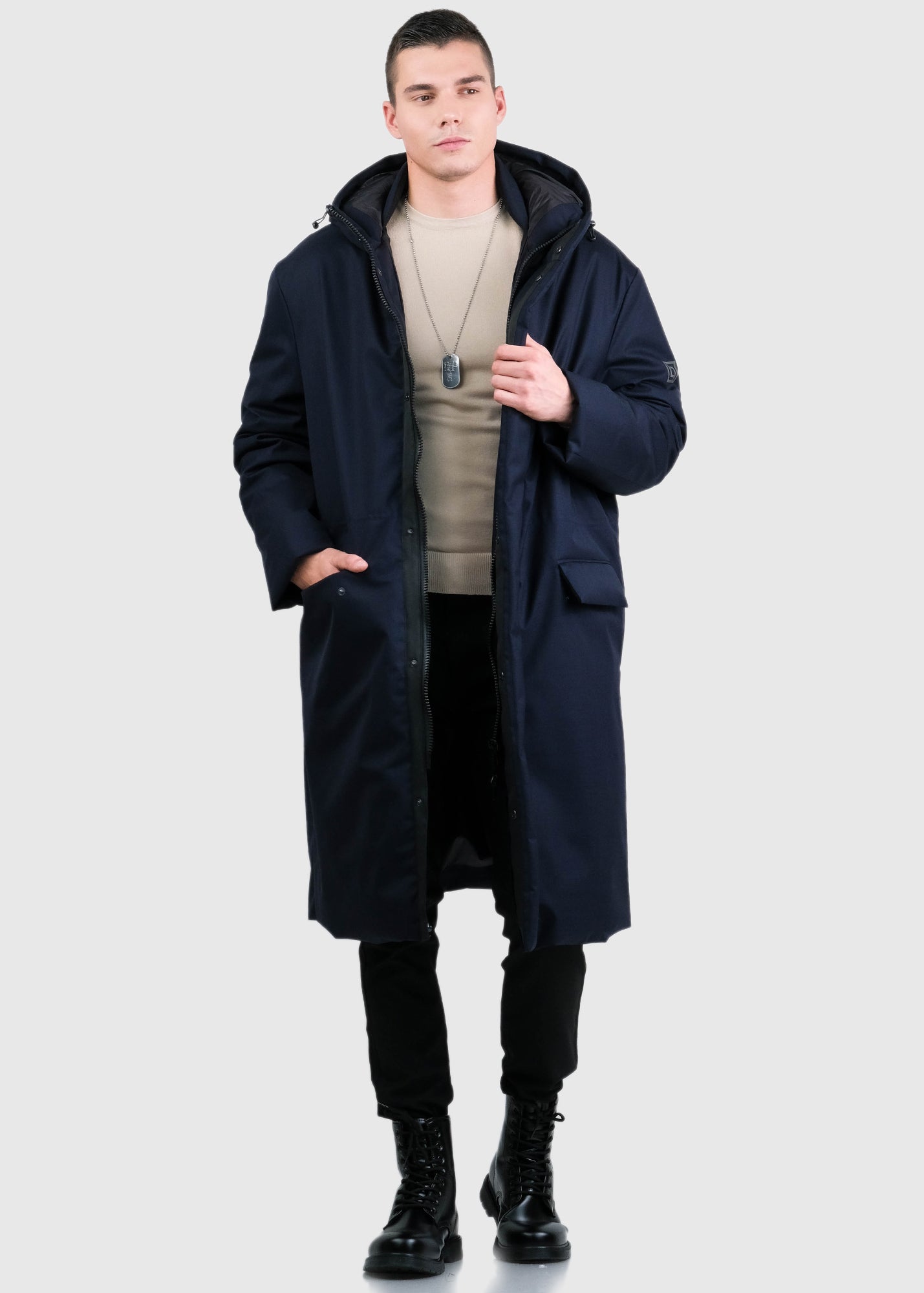 Erminio tumši zila vīriešu pagarināta parka