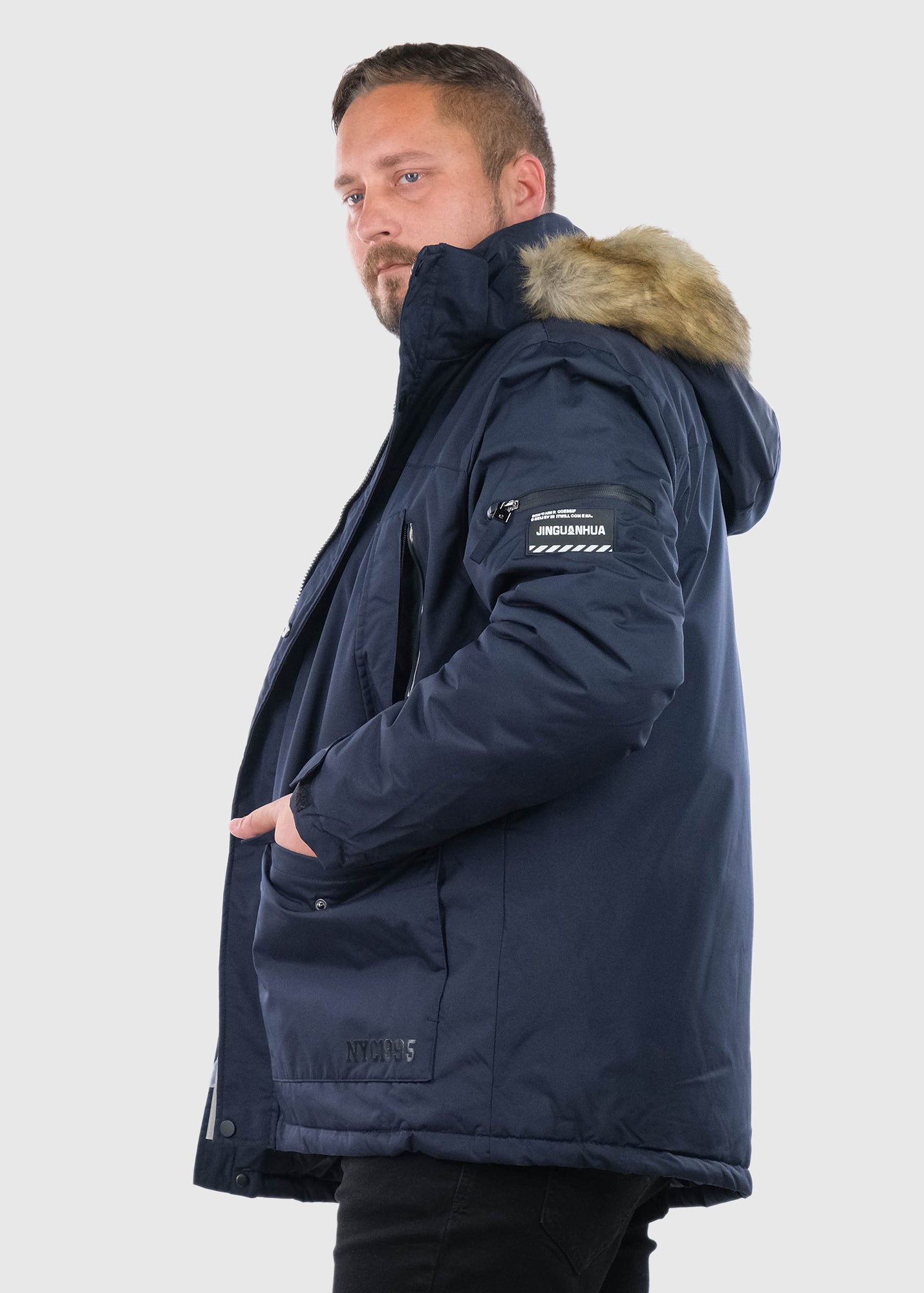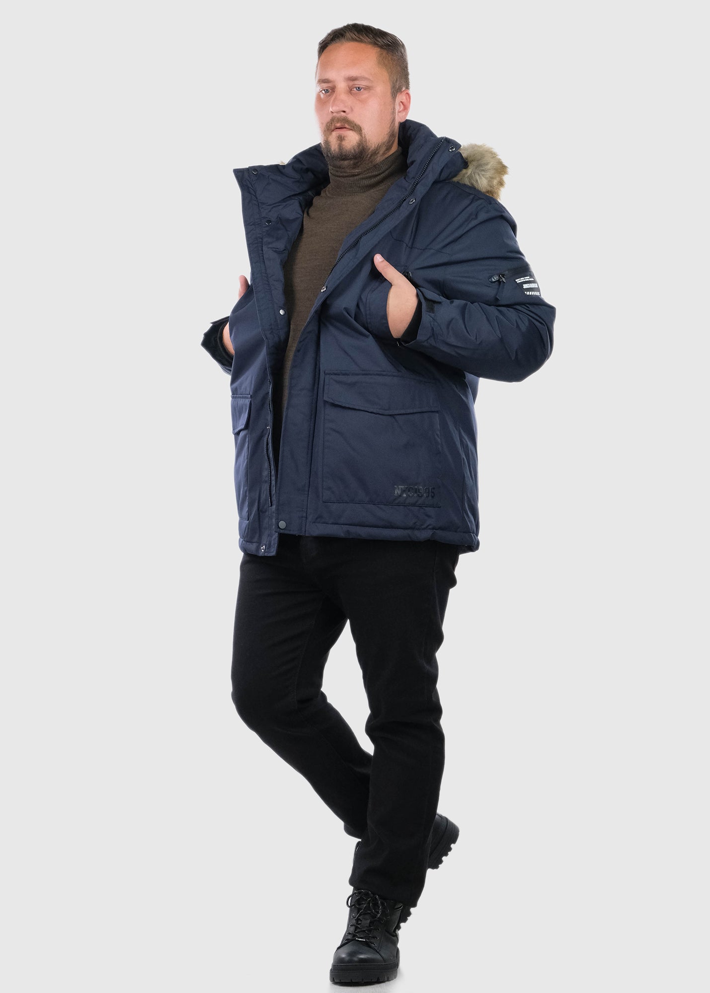 Giusi Lielo izmēru tumši zila vīriešu jaka ar kapuci