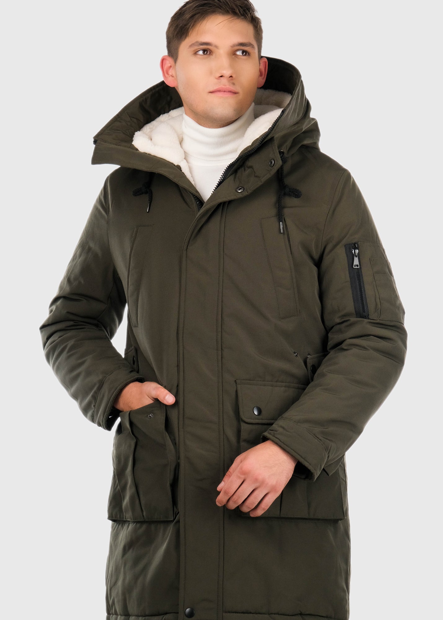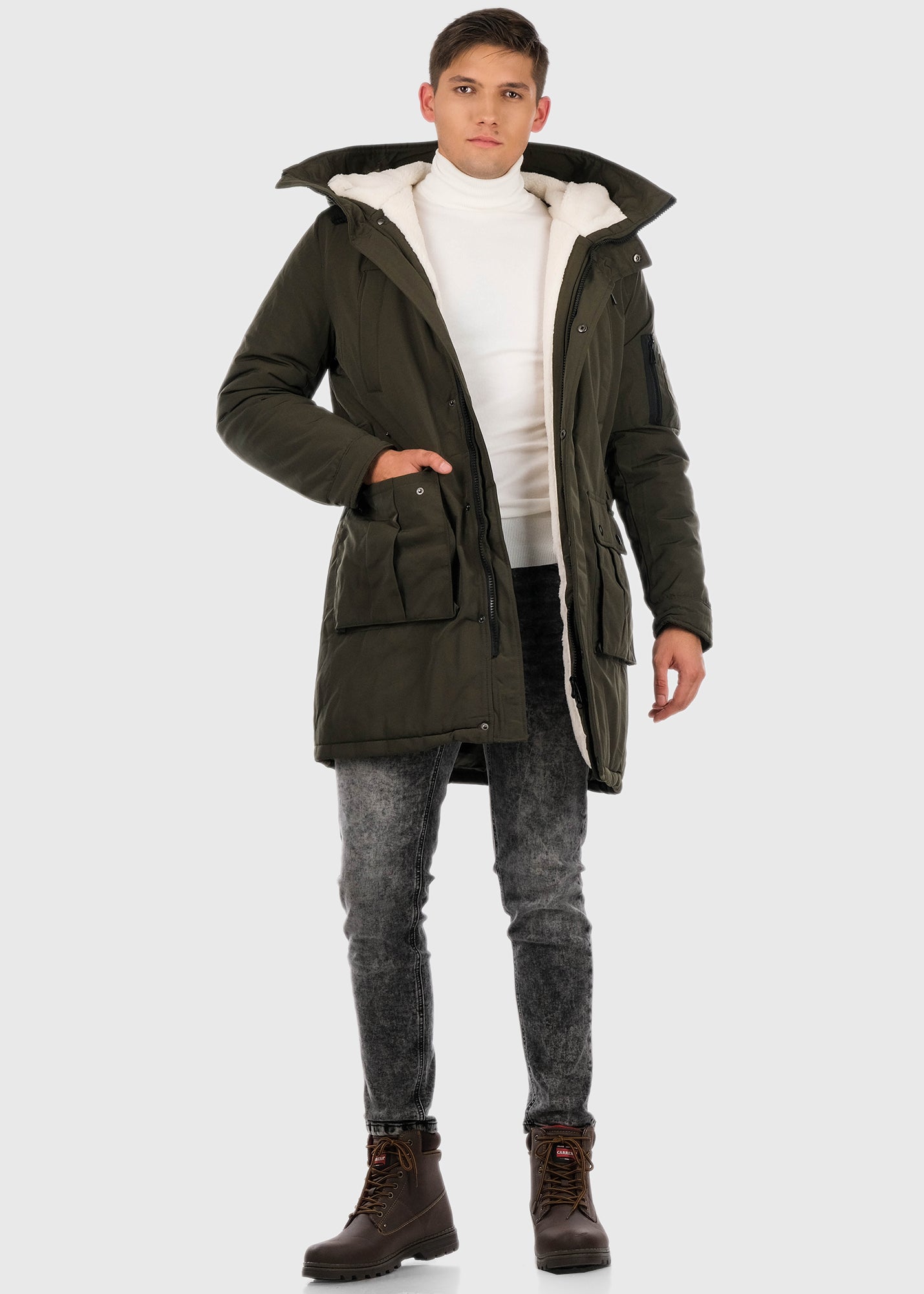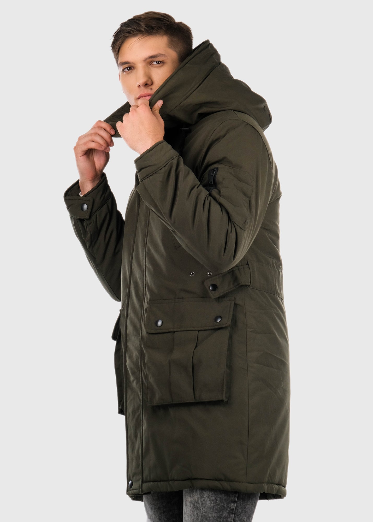 Haki parka ar kargo tipa kabatām