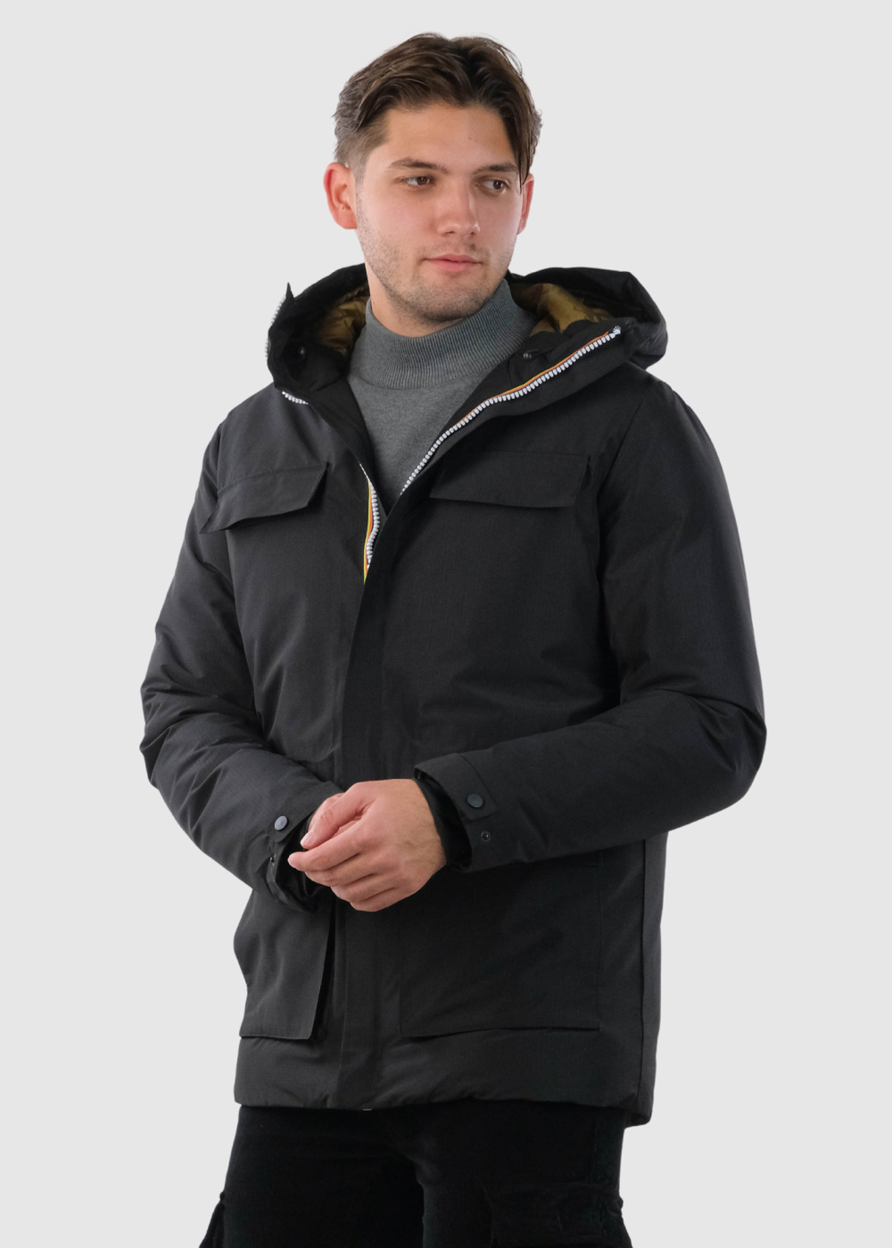 Leksi melna vīriešu parka ar kargo tipa kabatām